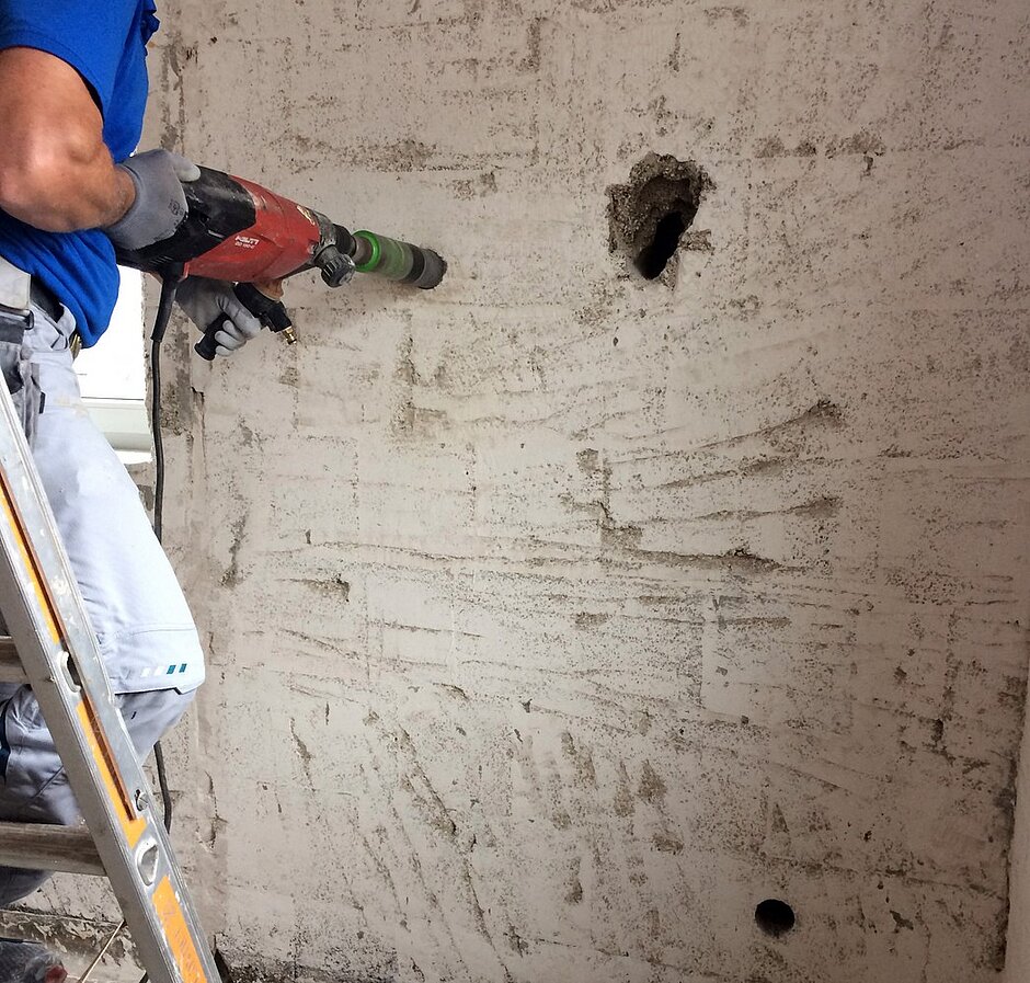 Um den Fragenstellenden Klarheit zu verschaffen, hat Jasto die Initiative ergriffen und vor Ort Probebohrungen im Mauerwerk von betroffenen Häusern vorgenommen und diese von der Materialprüfungs- und Versuchsanstalt MPVA in Neuwied untersuchen lassen. Geprüft wurden typische massive Bauweisen mit Leichtbeton. Dies waren zum einen Mauerwerk aus geschlitzten Vollblocksteinen und zum anderen ein hochwärmedämmendes Mauerwerk aus Jasto Kombisteinen mit einer integrierten Mineralwolle-Dämmung.