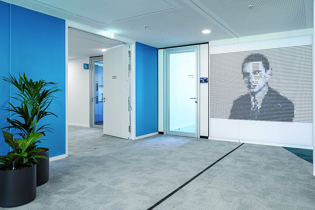 Besonders herausfordernd war die Umsetzung der umfangreichen Brandschutzkonzeption. Zum Einsatz kamen zahlreiche zweiflügelige Brandschutzelemente des Typs 70 und Typs 48 mit einer Höhe von fast 2,5 m und asymmetrischer Flügelteilung. »Ein Flügel erreichte dabei eine Breite von bis zu 1,3 m und wog rund 180 kg«, erklärt Achim Holtrup und ergänzt: »Bei insgesamt etwa 90 dieser Flügel bedeutete das nicht nur höchste technische Präzision, sondern auch eine logistische Meisterleistung bei Montage und Transport.« Die Türen von Jeld-Wen wurden ferner mit modernster Sicherheits- und Steuerungstechnik ausgestattet: Magnet- und Riegelkontakte sowie Fluchttürsteuerungen sorgen für maximale Sicherheit und gewährleisten, dass die Türen im Normalbetrieb geöffnet bleiben, im Notfall jedoch zuverlässig das Ausbreiten eines Feuers verhindern. Neben der technischen Leistungsfähigkeit spielte auch das Design der Türen eine entscheidende Rolle. Zahlreiche Elemente wurden flächenbündig ausgeführt, ergänzt durch integrierte Türschließer in Nebenräumen, sodass das architektonische Gesamtbild nicht gestört wird.