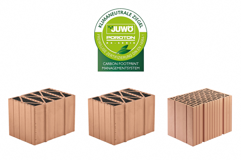 Der technische Fortschritt der RX-Ziegel sei auf das spezielle Lochbild und ein neuartiges Hightech Füllmaterial namens »PoroTec« zurückzuführen. Dieses ist gut geschützt im Ziegel integriert und verspricht eine hohe Wärmedämmung mit einer Wärmeleitzahl LambdaR bis zu 0,060 W / (mK) je nach Zulassung. In der Spitze erzielen RX-Ziegel Druckfestigkeiten bis fk 5,0 MN / m² sowie Schallschutzwerte bis Rw,Bau,ref 50,7 dB, so Juwö Poroton. Ein umfangreiches Angebot an Ergänzungsziegeln wie Eck-, Laibungs- und Kimmziegeln vervollständigt das Produktsortiment. Die Ziegel werden im Werk in Wöllstein (Rheinhessen) klimaneutral produziert und sind nach DIN EN 14064-1 zertifiziert. Sie sind laut Hersteller von Anfang an und über den gesamten Lebenszyklus hinweg schadstofffrei, wartungsfrei, langlebig und schlussendlich wiederverwertbar. Juwö hat ein spezielles Recyclingkonzept erarbeitet, bei dem Ziegelbruch und Dämmstoff zurückgenommen und sortenrein getrennt wieder dem Produktionskreislauf zugeführt werden können.