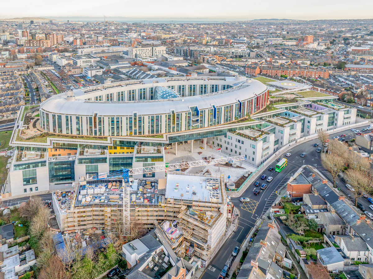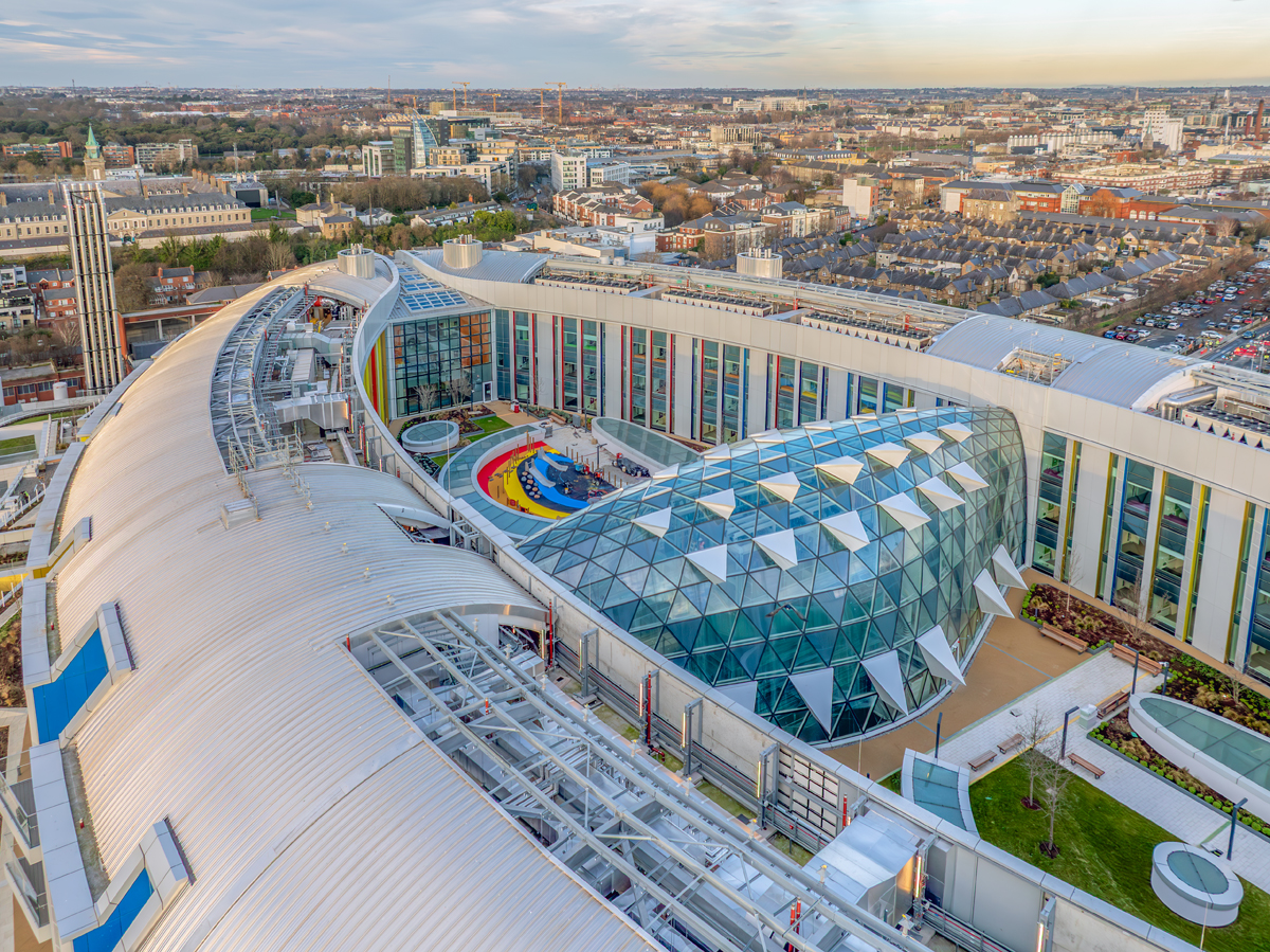 Basierend auf den Plänen des Architekturbüros BDP architects entstand ein Bauwerk, das sich dem abfallenden Gelände anpasst und mit geschwungenen Formen sowie großzügig verglasten Fronten transparent und offen zeigt. Der Hauptfokus liegt auf der ovalen Form des Krankenhauses: Von den oberen Stockwerken ausgehend, lassen sich der Innenhof sowie die Dachterrassen der anderen Gebäudeabschnitte mit Sitz- und Spielmöglichkeiten problemlos erreichen.