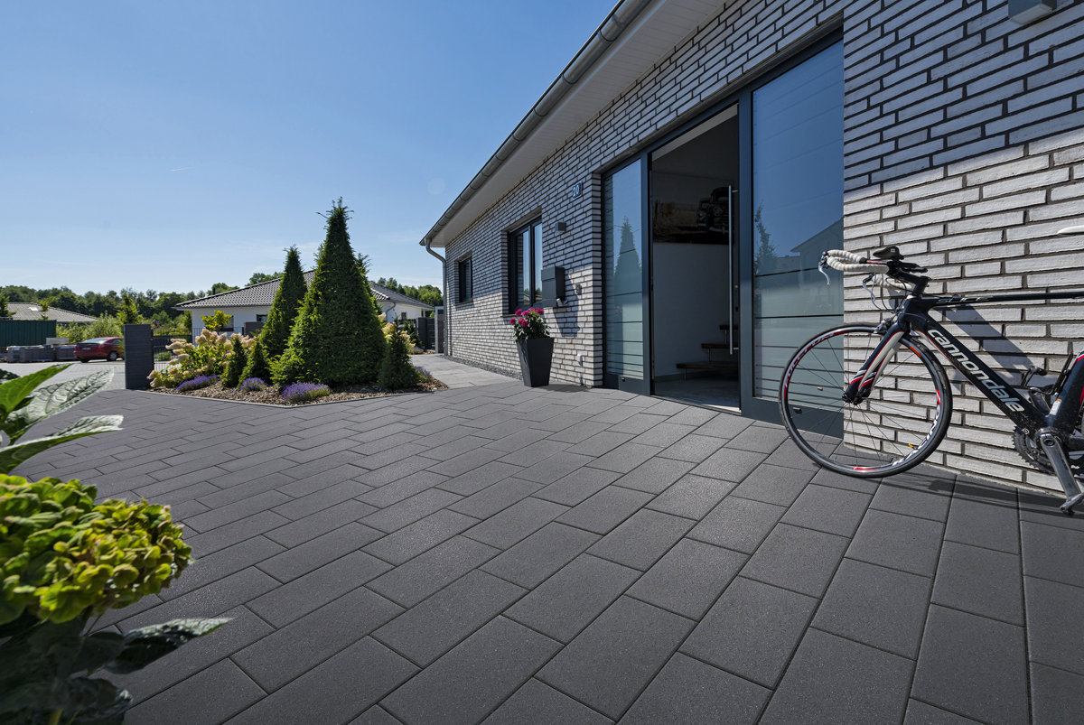 »Pheos« ist im rechteckigen Format 40 x 20 x 6 cm (L x B x D) erhältlich. Dank der Minifase von 2 mm wirkt das Fugenbild schmal. Zur Verlegung bieten sich verschiedene Reihenverbände oder ein Ellbogenverband an. Eine hohe Stabilität der Pflasterfläche gewährleistet der »Kann tec-10«-Verschiebeschutz mit seinen unsichtbaren Nocken, auch im Bereich der Grundstücksauffahrt oder im Carport. Aufgrund der Dicke von 6 cm ist »Pheos« leicht und spart Ressourcen wie Rohstoffe und Energie bei der Fertigung sowie beim Transport. So lassen sich hochwertige Gestaltungslösungen und ein respektvoller Umgang mit der Umwelt miteinander kombinieren.