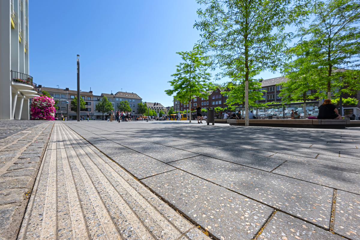 Lediglich die 1 cm dicke Vorsatzschicht, die in nahezu allen Designs der Kann-Produktpalette hergestellt werden kann, besteht bei den »ProKlima«-Steinen noch aus Beton herkömmlicher Herstellung. »Bezüglich Struktur, Rutschhemmung, Fasenverlauf und Farbgebung gleichen die verlegten Klimasteine damit exakt ihren klassischen Pendants. Nicht nur das: Sie sind auch ebenso widerstandsfähig gegenüber Belastung, Frost oder Streusalzeinwirkung und erfüllen alle technischen Eigenschaften herkömmlicher Pflastersteine«, verspricht Wollmann. »Damit eignen sie sich bestens für den Einsatz in nahezu allen Anwendungsbereichen.«