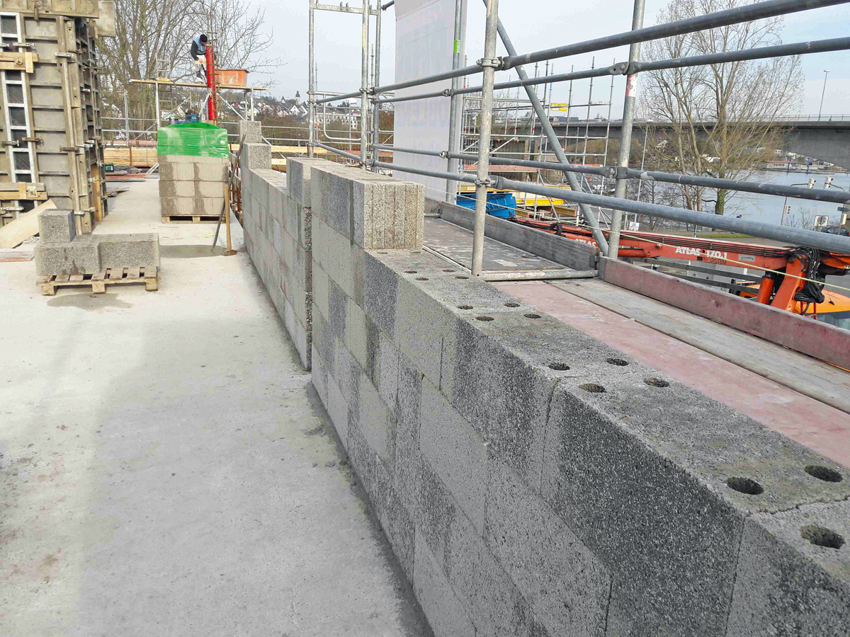 Baustoffe aus der Region sind ein weiteres Argument in jeder Ökobilanz. Die Region rund um Koblenz ist mit reichhaltigen Bims- und Tonvorkommen gesegnet. Die mit dem Rohbau beauftragte Firma Theisen-Bau aus Kruft verarbeitet KLB-Plan-Hohlsteine sehr häufig und auch des Öfteren schon für das Architekturbüro Stefan Schäfer.