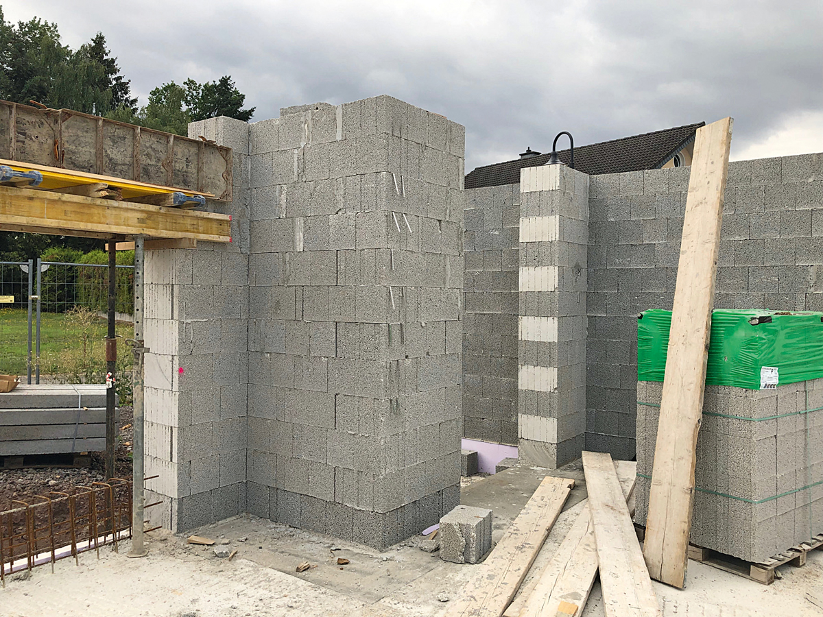 Grundlage ist die Verlegung der Steine in KLB-Dünnbettmörtel, der Wärmebrücken über Fugen auf ein Minimum reduziert. In Kombination mit dreifachverglasten Holz-Aluminiumfenstern und einem hochwärmegedämmten Flachdach können somit verhältnismäßig niedrige Energiekosten erzielt werden. Ein weiteres Entscheidungskriterium für den Leichtbeton-Mauerstein war seine Putzanhaftung, die eine gute Weiterverarbeitung ermöglicht und laut KLB aufgrund der hohlraumfreien Anhaftung auch bauphysikalisch mit hoher Sicherheit überzeugt. Durch die Verwendung von Sonderbauteilen, wie zum Beispiel Fertigteilstürzen oder Deckenabmauerungssteinen, wurde die Systemsicherheit in Bezug auf Wärmebrücken oder Spannungsrisse durch Materialwechsel weiter erhöht.