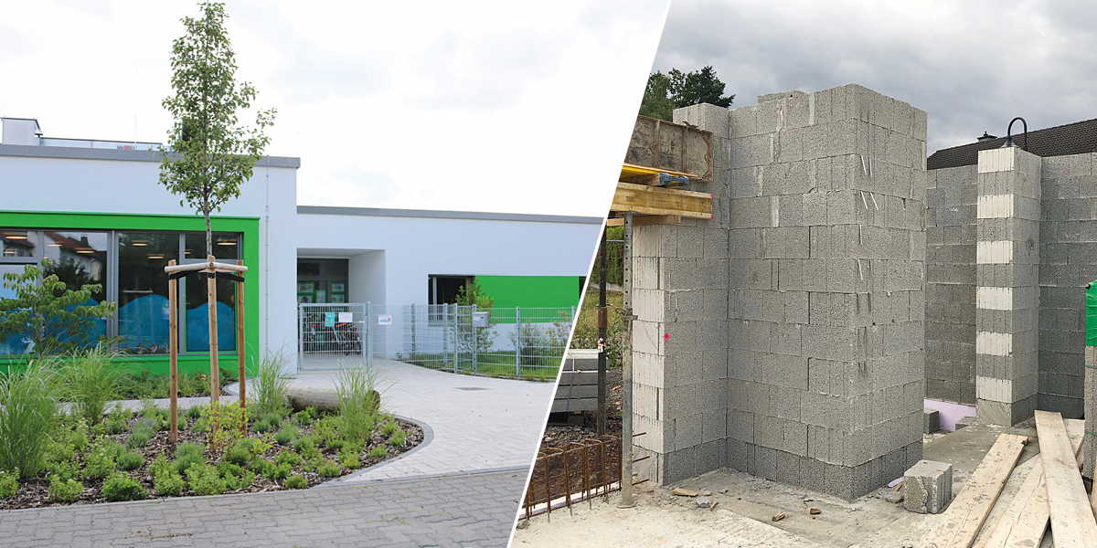 Im rheinland-pfälzischen Urmitz – zwischen Koblenz und Andernach gelegen – hat sich die zuständige Verbandsgemeinde Weißenthurm bei ihrem geplanten Kita-Neubau für den Einsatz von KLB Leichtbetonsteinen entschieden. Dafür sprachen nach Angaben von KLB Klimaleichtblock auch bauphysikalische Gründe: So bieten Leichtbetonsteine einen guten Schallschutz und die monolithischen Außenwände erreichen traditionell sehr gute Wärmeschutzwerte. Zudem überzeugt der Baustoff durch seinen ökologischen Fußabdruck.