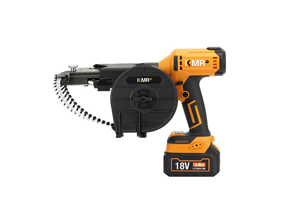 Mit dem »KMR BSD multi« werden mit den Rundmagazinaufsätzen mit 25 bis 50 mm und mit 40 bis 80 mm OSB- und Spanplatten für Boden- und Wandbeplankungen, Fassaden- und Deckenelemente, Unterkonstruktionen und Beläge von Holzterrassen mit kunststoffgebundenen Schrauben befestigt. Die Kunststoffgurtung vermeidet bei Sichtbefestigungen von Fassaden gegenüber drahtgebundenen Befestigungselementen Drahtrückstände, die zu unschönen Rostnasen an der Fassade führen können.