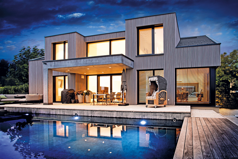 Doch nicht nur im Haustüren-Bereich bietet Kneer-Südfenser designstarke Produkte mit neuester Technik, das gilt auch für die gefragten Hebe-Schiebetüren. »Der Trend geht auch hier zu großen Systemen, die viel Licht ins Innere lassen. Aber gerade bei extrem großen Bauteilen entstehen auch einige Probleme: das hohe Gewicht, die Gefahr des ›Verziehens‹ des Materials bei starker Sonneneinstrahlung sowie auch die mit der Größe schwerer werdende Bedienbarkeit. Hier ist Kneer permanent in der Entwicklung, diese Bauteile noch zu verbessern, zum Beispiel durch geringeres Gewicht, höhere Stabilität und einfachere Bedienbarkeit. Gerade bei Hebe-Schiebetüren macht es bei besonders großen Exemplaren zum Beispiel Sinn, über einen motorischen Antrieb nachzudenken. All das wird in unseren Entwicklungsabteilungen kontinuierlich verbessert und effektiver gestaltet«, so Reinhard.