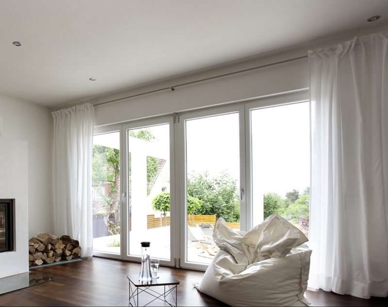 Bei festverglasten Fenstern mit Rahmen ist die Glasscheibe ohne Öffnungsoption direkt im Rahmen integriert, sodass kein Fensterflügel die Glasoptik stört. Als puristisches Element bieten sie eine interessante Alternative für Bauherren und Renovierer, die eine Fassadengestaltung mit viel Glas wünschen, jedoch im Vergleich zu einer kompletten Glasfassade eine preisgünstigere Variante suchen.