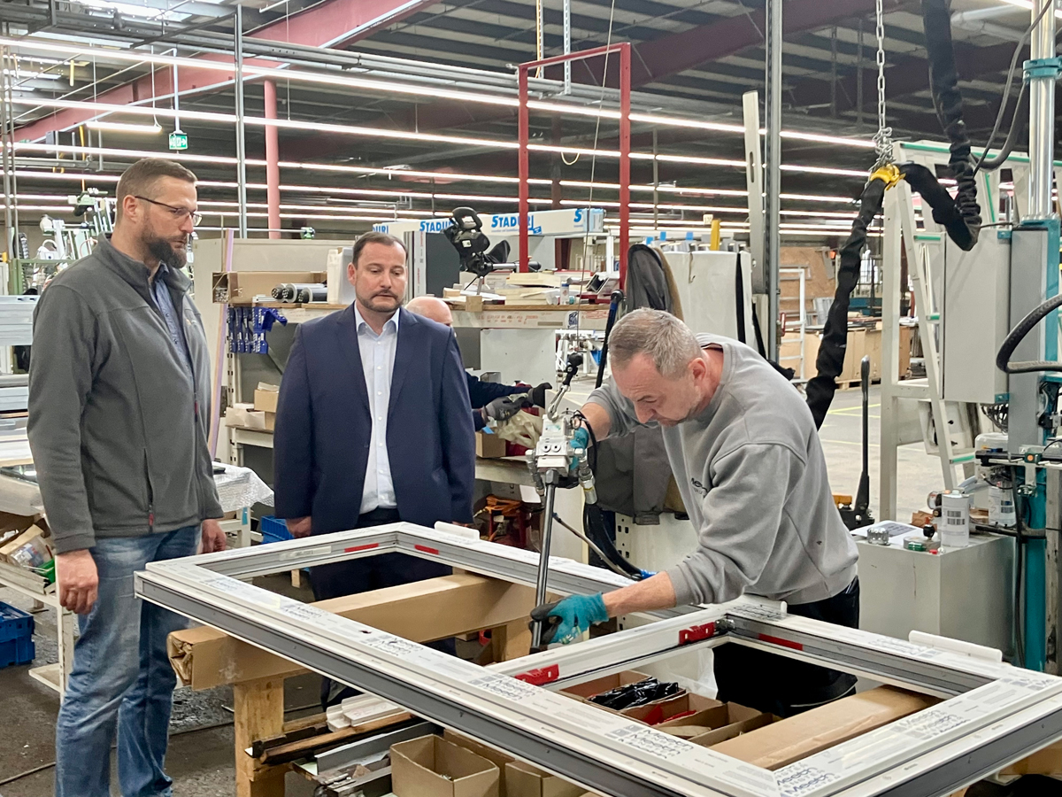 In der modernen Fertigungshalle in Laufeld herrscht geschäftiges Treiben: Der Geruch von Polysulfid und warmem Butyl-Dichtstoff liegt in der Luft, während Glasscheiben Takt für Takt die vollautomatisierte Linie durchlaufen. Mit höchster Präzision trägt der TPS-Applikator den thermoplastischen Abstandshalter auf die Glasscheiben auf. Alle zwei Minuten verlässt eine fertige Isolierglaseinheit die Linie – bis zu 1300 Einheiten täglich. Anlagenführer Benjamin Thetard überwacht konzentriert den Prozess – Effizienz, Präzision und Qualität greifen hier perfekt ineinander.