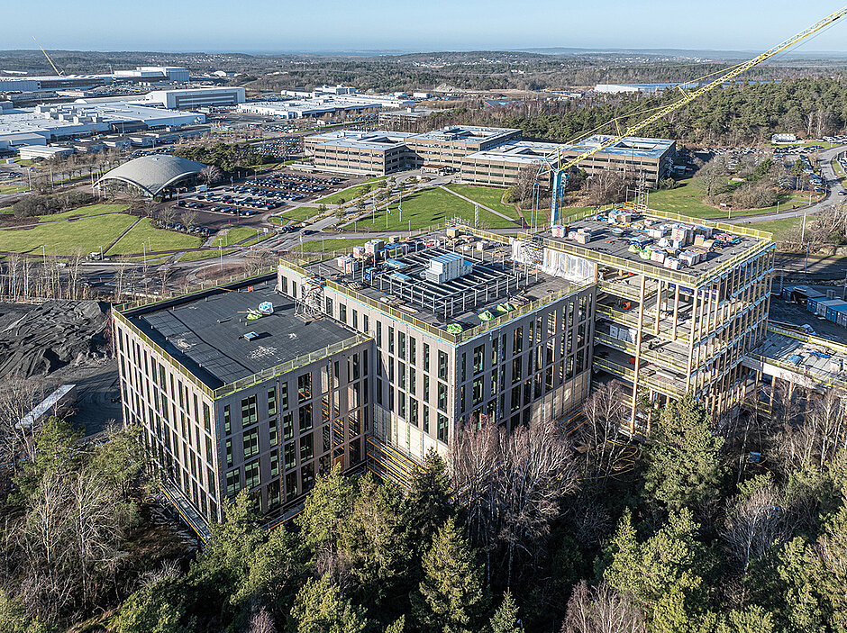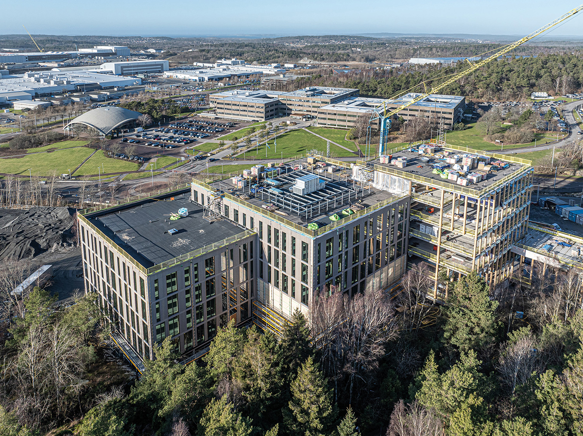 Innovationen benötigen Raum zur Entfaltung – diese Überzeugung treibt den schwedischen Automobilhersteller Volvo Cars beim Aufbau seines neuen Campus in Torslanda an. Pünktlich zum 100-jährigen Firmenjubiläum im Jahr 2027 entsteht dort aktuell die »Mobility Innovation Destination Torslanda« – ein zukunftsweisendes Ökosystem für neue Mobilitätslösungen. Kernstück des Projekts ist das Innovationszentrum mit einer Fläche von 25 000 m2, das nicht nur als Testfeld für automobile Zukunftstechnologien dient, sondern auch ein architektonisches Ausrufezeichen in Sachen Nachhaltigkeit setzt.