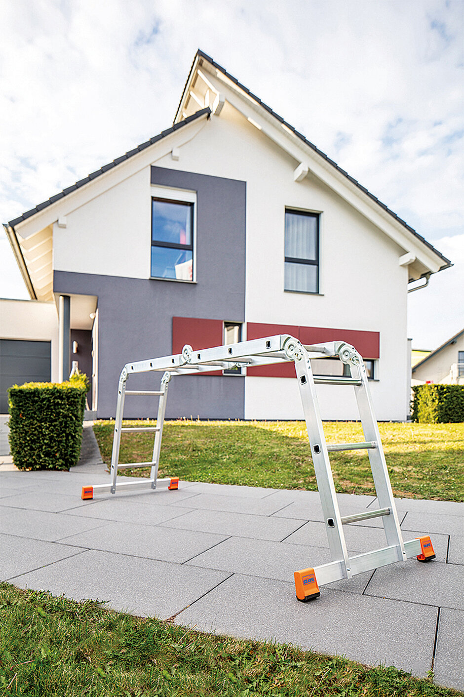 Möchte man nach Gebrauch die Leiter lösen, wird der Einhandbedienbügel lediglich erneut nach vorn gezogen. So wird das Gelenkpaar wieder entriegelt und die Leiter kann zusammengeklappt und verstaut werden. Dank der hochwertigen Materialien und der Produkt-Ergonomie ist die Bedienung laut Krause einfach und intuitiv. J