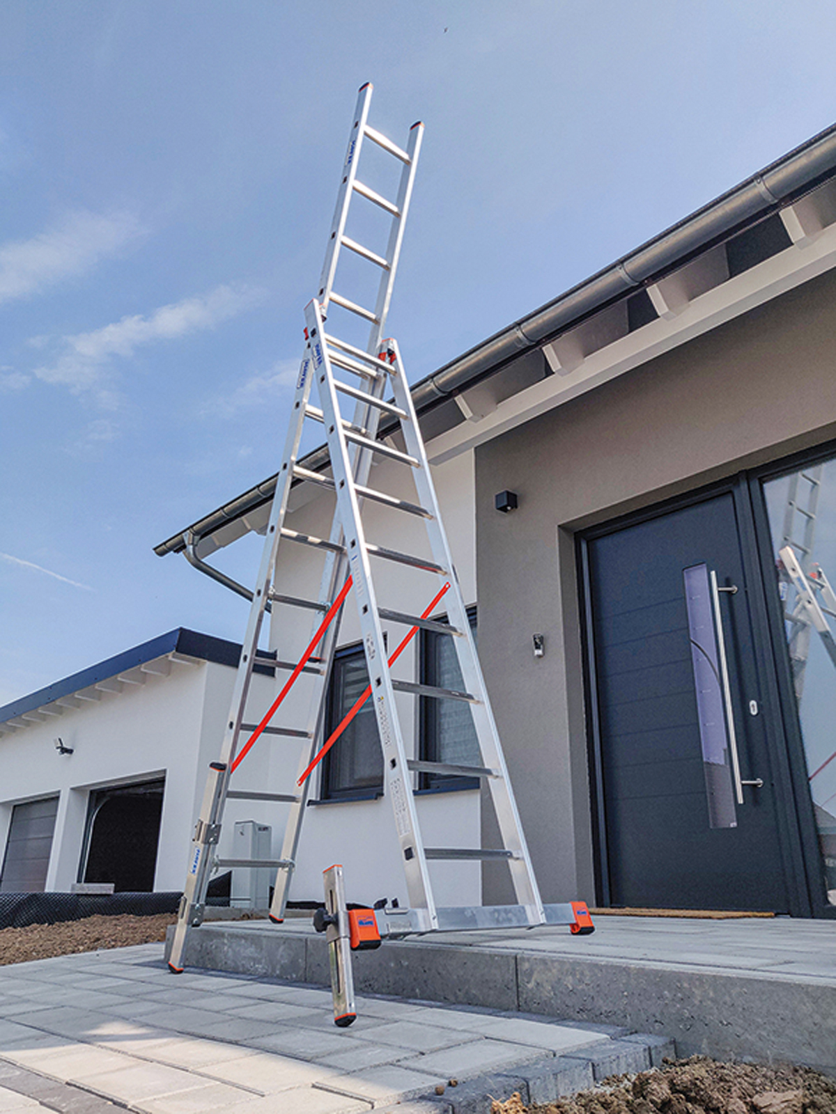 Unternehmen profitieren von TÜV-geprüften Lösungen, die Investitionen sichern und die Einhaltung von Normen wie DIN EN 131 ermöglichen. Doch auch Heim- und Hobbyhandwerker sind angesprochen. Wer schon einmal auf einer wackeligen Leiter versucht hat, eine Dachrinne zu reinigen oder eine Lampe zu montieren, kennt das mulmige Gefühl. Hier bieten Zubehörteile wie Traversen, Holmverlängerungen oder einfache Werkzeugablagen ein Plus an Sicherheit. Gerade weil private Arbeiten oft allein ausgeführt werden, ist jedes Detail, das Stabilität und Ordnung schafft, besonders wertvoll. Auch Handläufe, Haltestangen oder Einhängemöglichkeiten für Leitern erhöhen die Sicherheit.