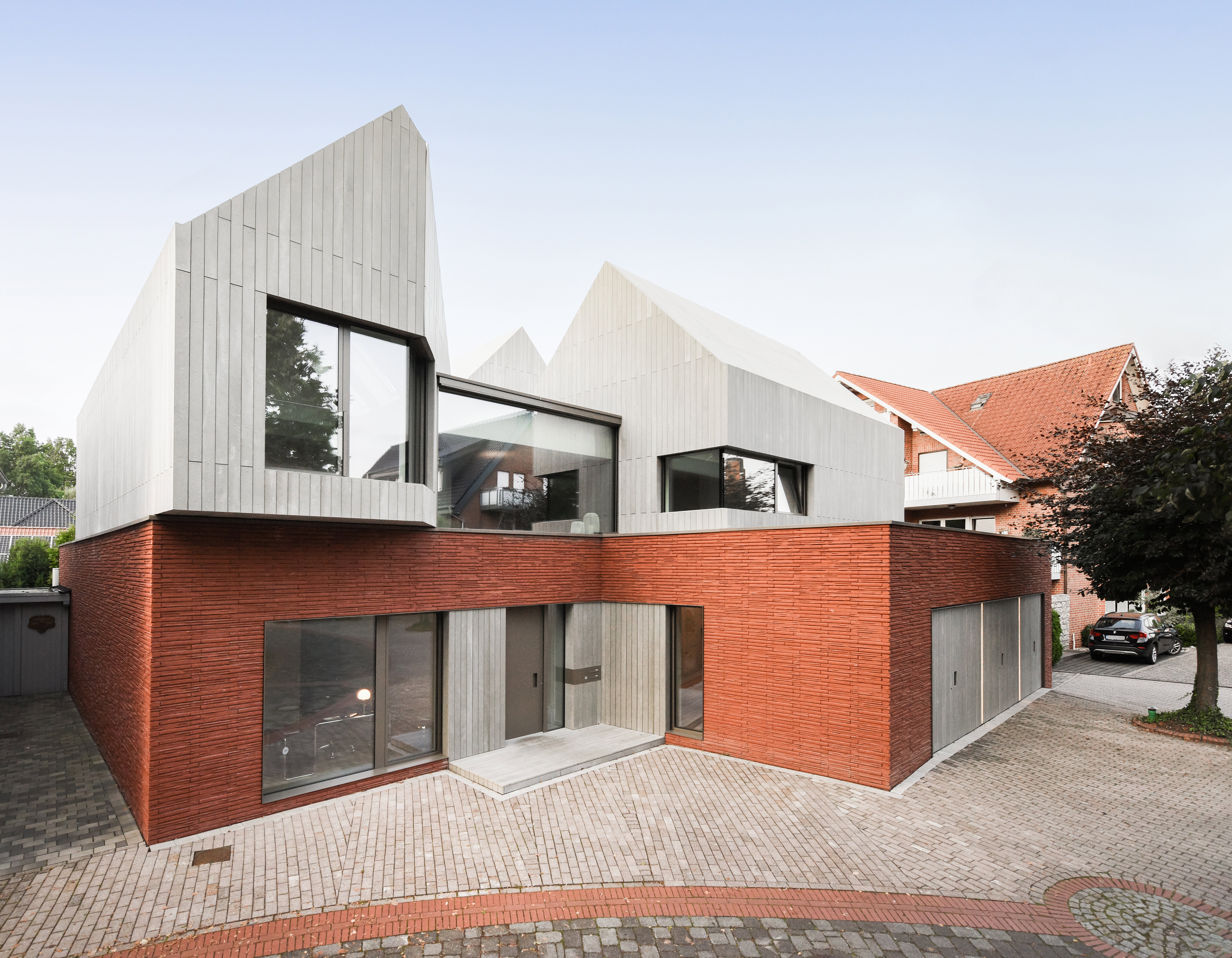 Ein weiterer Beitrag führt nach Beelen ins Münsterland. Auch hier wurden bestehende Strukturen zum Ausgangspunkt für das „Haus aus Häusern“ von Architekten Spiekermann. „Wir führen die Kräfte teilweise wirklich wild spazieren“ so Oliver Spiekermann. Nicht nur deshalb sei Kalksandstein mit seiner hohen Tragfähigkeit bei der Aufstockung das Material der Wahl gewesen.