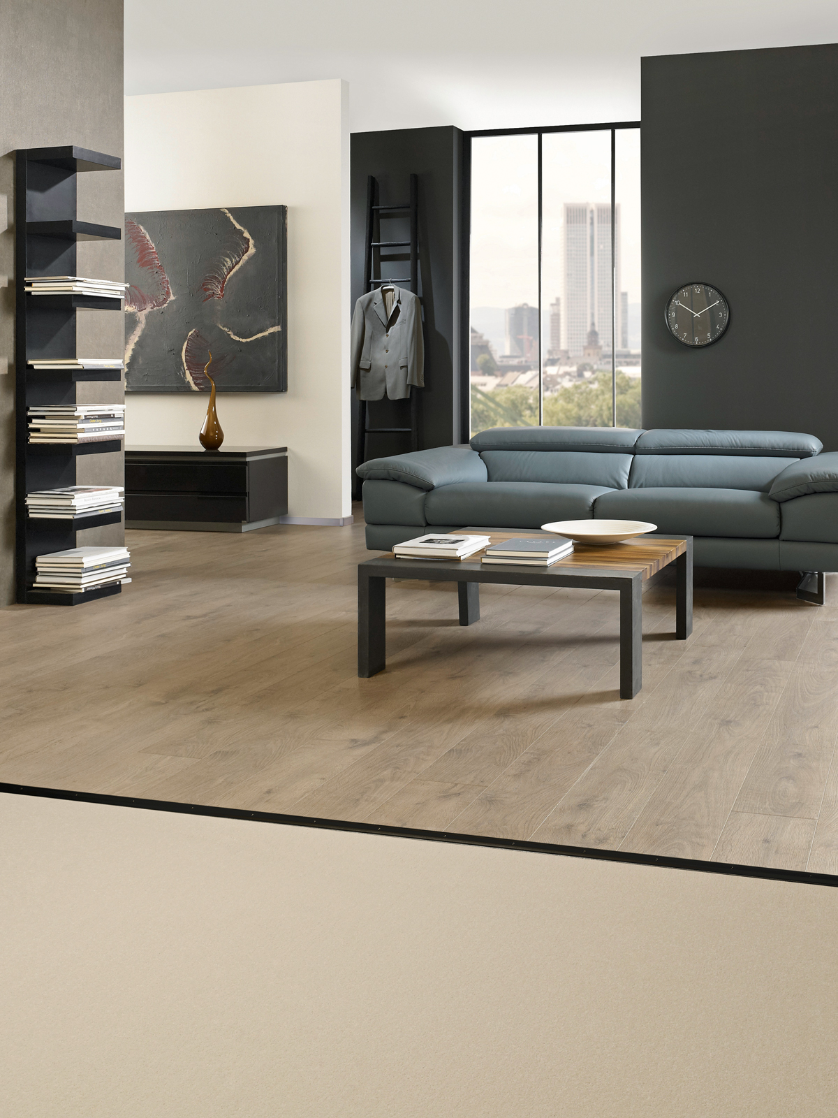 Mit mehr als 90 Profillösungen in den Farben F16, schwarz matt pulverbeschichtet (RAL 9005), und F17, schwarz eloxiert, kann jetzt bei praktisch allen Verarbeitungssituationen mit Vinyl- und Hartböden die »Midnight Edition« eingesetzt werden. Die stark nachgefragten 2-und 3-teiligen Profilsysteme inklusive der farblich passenden »TORX«-Schrauben ebenso wie Übergangs-, Abschluss-, Winkel- und Treppenkantenprofile, Wand- und Tapetenprofile sowie auch Treppenläuferstangen sind in diesem edlen Look erhältlich.