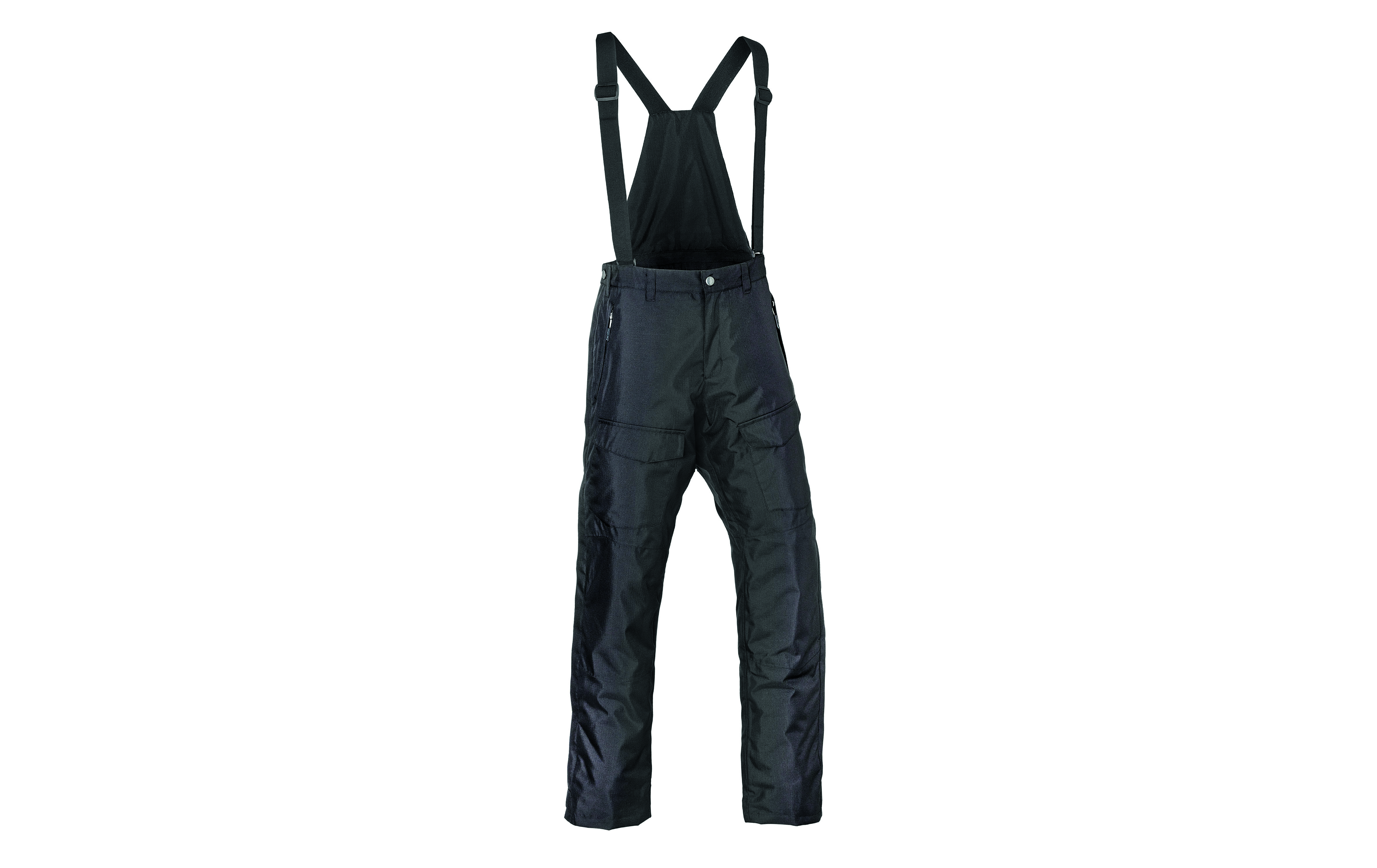 Die wasserdichte, wattierte Wetterhose mit abnehmbaren Latzträgern ergänzt die Hardshelljacke perfekt. Zusammen getragen schützen sie gegen Kälte gemäß EN 342 und Regen bzw. Feuchtigkeit gemäß EN 343. Der durchgehende seitliche 2-Wege-Reißverschluss der Hose ermöglicht einfaches und schnelles Überziehen. Durch die verschweißten Nähte und die elastische Nässesperre am Hosensaum dringt selbst bei Starkregen oder Schnee keine Feuchtigkeit ins Innere. Auch optisch erweist sich die in Schwarz erhältliche Wetterhose als perfekter Kombinationspartner für die Hardshelljacke.