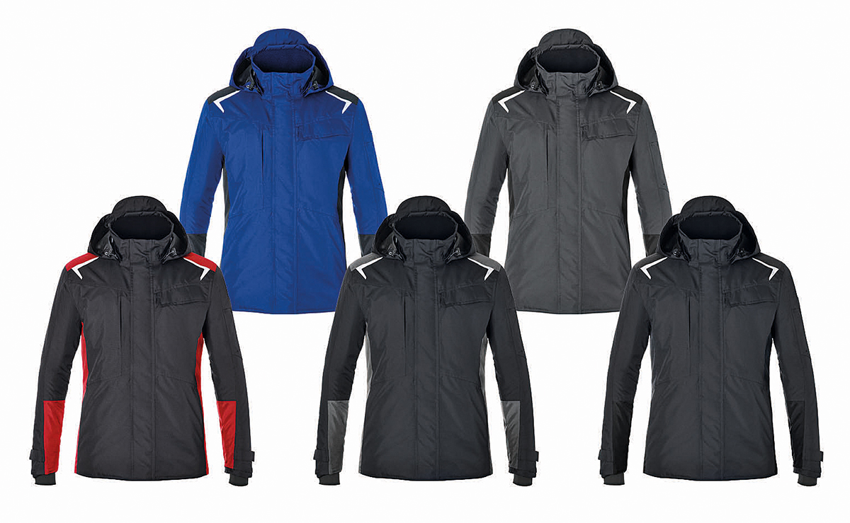 Die neue Hardshelljacke aus der Serie »Kübler Bodyforce« begleitet ihre Träger und Trägerinnen trocken und höchst komfortabel durch die kalte Jahreszeit. Dank des wasserdichten Gewebes und der verschweißten Nähte erfüllt sie die Vorgaben der Wetterschutznorm EN 343 und schützt sicher gegen Niederschläge. Für wohlige Wärme sorgen das weiche Innenfutter, der hoch schließende Kragen mit Innenkragen aus Fleece sowie die Weitenregulierung an Kapuze, Jacken- und Ärmelsaum. Ein im Rücken eingearbeiteter 3D-Mesh-Einsatz dient der besseren Wärme- und Feuchtigkeitsregulierung. Neben ausgereifter Funktionalität bietet die Hardshelljacke das für die Kollektion »Kübler Bodyforce« typische attraktive Design. Dieses wird bestimmt durch körpernahen Schnitt, markantes und sehr robustes »Ripstop-Oxford«-Gewebe als Obermaterial sowie dynamische »Y-Wings« aus Reflexmaterial an Ärmeln und Schultern. Die Jacke ist in fünf Farbstellungen lieferbar: in uni Schwarz, in Schwarz mit Kontrasteinsätzen in Rot, Kornblumenblau oder Anthrazit und in Anthrazit mit schwarzen Kontrasteinsätzen.