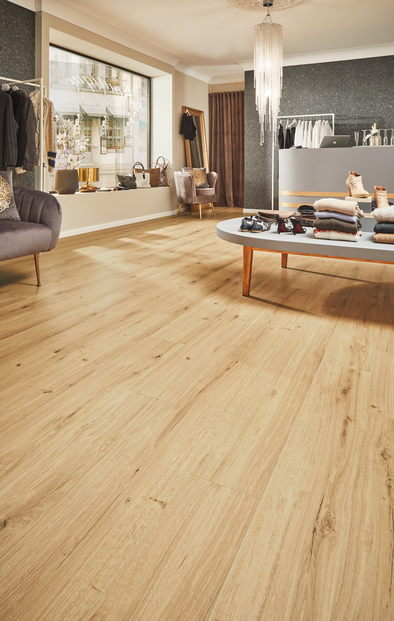 Mit der »Korus«-Oberflächentechnologie erreicht »Java« die Beanspruchungsklasse 33, die diesen Belag strapazierfähig und objekttauglich macht. »Java« besitzt laut KWG eine extrem hohe Chemikalien- und auch Urinbeständigkeit. Selbst für sonnenlichtdurchflutete Bereiche inklusive Wintergärten sei »Java« die richtige Entscheidung, denn die Drucktechnologie erreiche beim Wert Lichtechtheit 7 bis 8 (bei einer Skala von 1 bis 8). J