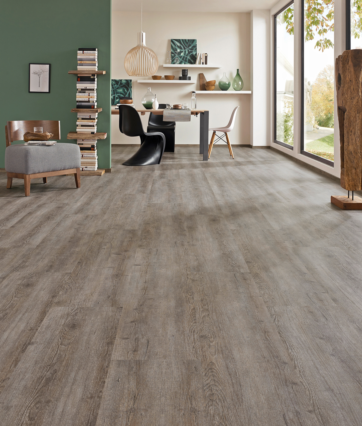 Neben den bei den Verbrauchern bekannten Vorzügen, wie gehschallreduzierend, fußwarm und elastisch, hat »Samoa« ein wechselndes Erscheinungsbild, denn je nach Geschmack kommt der Bodenbelag in Holz- oder Steinoptiken daher, was am Ende aber immer eins ist: fußwarm und das auch ohne Fußbodenheizung. Die Stein- und Holzreproduktionen lassen sich mit bloßem Auge nicht von den originalen Vorlagen unterscheiden, betont KWG.