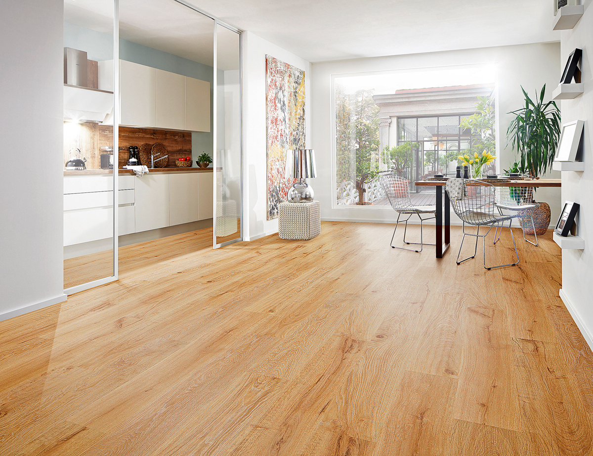 KWG arbeitet aber auch sehr eng mit den portugiesischen Produktionsstätten zusammen, um auch traditionelle Korkdekore, die teilweise in intensiver Handarbeit entstehen, weiterzuentwickeln. Eines aber haben beide Systeme neben den korktypischen Kernaussagen auch gemeinsam: Sie sind robust, sehr pflegeleicht und passen sich jedem zeitgemäßen Wohntrend an. Um den natürlichen Look und die Haptik noch authentischer wirken zu lassen, hat KWG bei der »Q-Exclusivo«-Kollektion drei Dekore mit »pure touch« versehen, einem hochabriebfesten Öl-Finish. Wenn eine hohe Beanspruchung, wie sie bei der gewerblichen Nutzung oder großen Haustieren besteht, das Kriterium ist, sorgt »HotCoating« auch bei der HC-Korkfertigparkett-Kollektion mit Naturdessins für die notwendige Sicherheit.