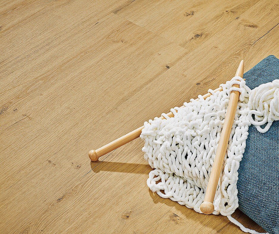 Neben der Druckqualität unterstreichen bei dem Dessin »Kaschmireiche« die Synchronprägung und das supermatte Finish die optische Authentizität. Für den gewerblichen Bereich gilt bei den Sheets zur vollflächigen Verklebung bei der »antigua professional«-Kollektion die hier wichtige Nutzungsklasse 42. Neu hinzugekommen ist eine Verlegevariante, die laut KWG neue Möglichkeiten bei einer holzbasierten Trägerplatte beschert. Die Vorteile des »hydrowood«-Trägers ergeben sich aus der patentierten Zusammensetzung der Platte. So ist nicht nur eine wasserfeste HDF-Variante gegeben, die raumübergreifend ohne störende Übergangsschienen verlegt werden kann, sondern auch ganze Küchenelemente dürfen laut Hersteller auf dem schwimmenden Konstrukt gestellt werden. Zu berücksichtigen ist allerdings, dass ein ausreichender Seitenabstand zu festen Elementen und Wänden gegeben sein muss.