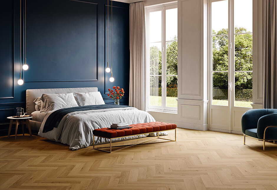 Zu Hause möchten wir ein Leben ohne Stress und Hektik genießen, zur Ruhe kommen und uns ungestört bewegen. Genau des verspricht die neue »Nakuru«-Kollektion von »Parquetvinyl by Lamett«. Es handelt sich um einen sehr geräuscharmen, schwimmend verlegbaren SPC-Rigidvinylboden mit integrierter Dämmung. Die Vinyldielen und Fischgratstäbe sind in verschiedenen Schichten aufgebaut, die unterschiedliche Schallfrequenzen blockieren. Dank der integrierten orangefarbenen »IXPE«-Unterlage, Markenzeichen aller »Parquetvinyl«-Kollektionen, ist die Verlegung leicht zu handhaben. »Nakuru« verringert den Trittschall laut Hersteller Lamett um 21 dB ΔLw und 10 dB ΔLlin. Er erreicht damit leicht die strengen akustischen Grenzwerte, die in den Niederlanden für den Projektmarkt gelten – und natürlich auch europäische Anforderungen. Geräusche von Fußtritten oder Möbeln, die verschoben werden, sind damit laute Hersteller Vergangenheit. Auch der sogenannte Reflexionsschall wird erheblich besser absorbiert, was sich positiv auf die Geräuschemissionen innerhalb der Wohnung auswirkt.