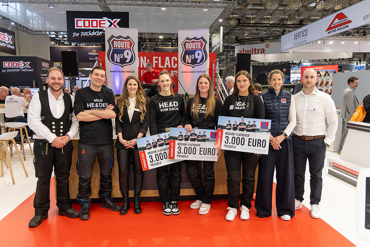 Am Ende stand ein starkes Zeichen für die Zukunft des Handwerks: Drei junge Dachdeckerinnen überzeugten die Jury mit herausragender Leistung und sicherten sich jeweils 3000 Euro Meisterzuschuss. Den ersten Platz belegte Maren May, gefolgt von Lena Heinen auf dem zweiten und Sarah Lahnstein auf dem dritten Platz. »Ich fand die Mission: Flachdach von Lamilux richtig cool. Das Geld kann man für die Meisterschule immer gut gebrauchen«, erklärt Sarah Lahnstein. Maren May ergänzte: »Es ist schön, dass man so ein Lob für die Arbeit bekommt, die man macht.«