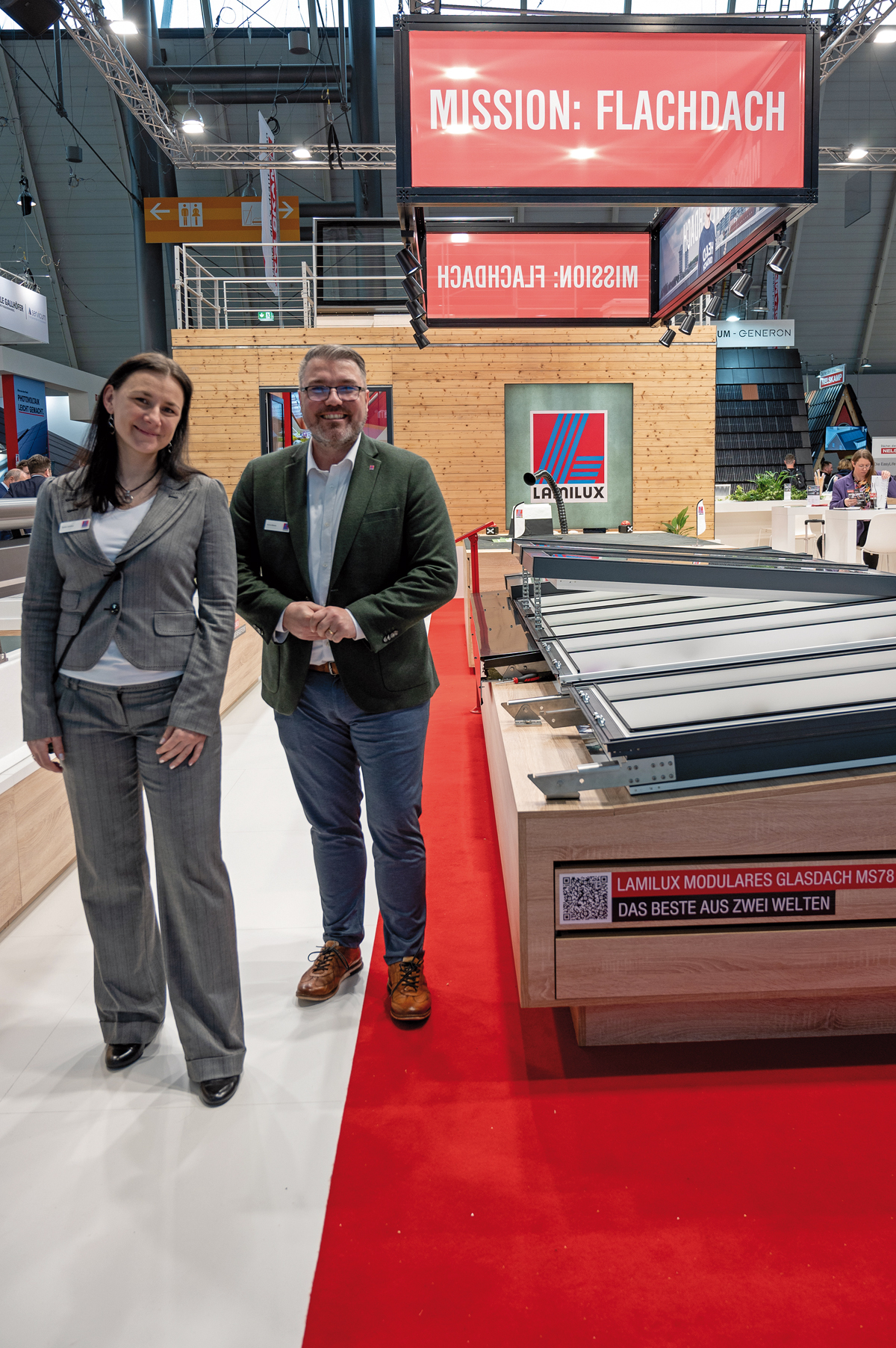 Auch die Lamilux Flachdach-Fenster »FE« und »F100« waren in Form von Exponaten auf dem imposanten Messestand zu finden. Die Premium-Flachdach-Fenster mit Aluminiumrahmen der »FE«-Serie überzeugen nicht nur durch individuelle Größen und verschiedene Verglasungen, es gibt sie auch in zahlreichen unterschiedlichen Varianten – allesamt mit besten Wärmedämmwerten. Unendliche Möglichkeiten und individuelle Anwendungszwecke versprechen auch die Lamilux Flachdachfenster der »F100«-Serie, welche die Klassiker für Verwaltungs- und Bürogebäude sind, laut Hersteller ebenfalls nur mit den besten Wärmedämmwerten.