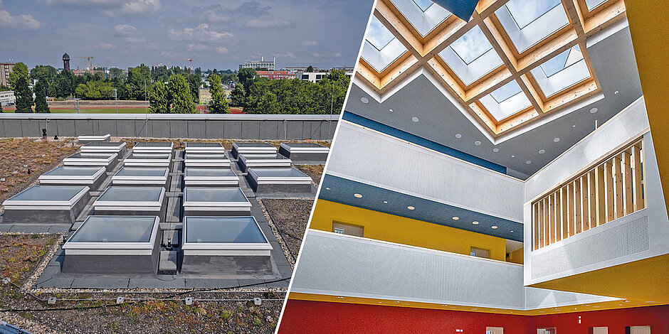 »Besonders bei Einrichtungen, in denen sich Kinder aufhalten, steht die Sicherheit an allererster Stelle. Das Lamilux Flachdach-fenster ›F100‹ ist deshalb nicht nur durchsturzsicher, es überzeugt außerdem in Sachen vorbeugendem Brandschutz, unter anderem bezüglich der Verhinderung der Brandweiterleitung, des Widerstands gegen Brandbeanspruchung und der hohen Beständigkeit gegenüber Windlasten«, so Tobias Käppel.