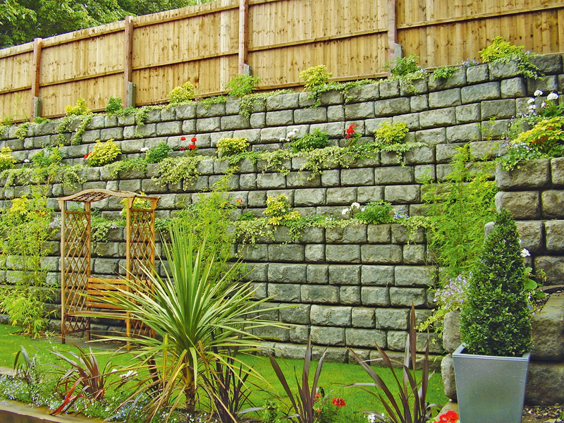 Hergestellt aus qualitativ hochwertigem Beton, ermöglicht das intelligente Stützwandsystem das einfache Erstellen von Rundungen, Abstufungen, Eckausbildungen sowie freihstehenden Mauern. Damit ist »Redi Rock« eine flexible Lösung – egal ob im privaten Bereich bei Neubau oder nachträglicher Gartengestaltung sowie auch auf gewerblichen oder öffentlichen Flächen.