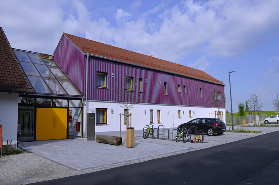 Mit der Eröffnung des Neubaus ist nach den Plänen der Marktgemeinde das Gesamtprojekt allerdings noch nicht abgeschlossen. In einer zweiten Baumaßnahme soll das angrenzende ehemalige Sportheim durch entsprechende Umbaumaßnahmen nutzungsgerecht in eine Kinderkrippe umgebaut werden. Die Kapazität an Betreuungsplätzen wird dadurch noch einmal erhöht. Begonnen hat der Umbau im Sommer 2020. Das Eingangsgebäude fungiert dann – wie vom Architekten bereits beim Entwurf des Neubaus berücksichtigt – als Verbindungstrakt. So harmonieren die Gebäude nicht nur architektonisch: Auch über ihre Nutzungsweise sind sie miteinander verbunden.