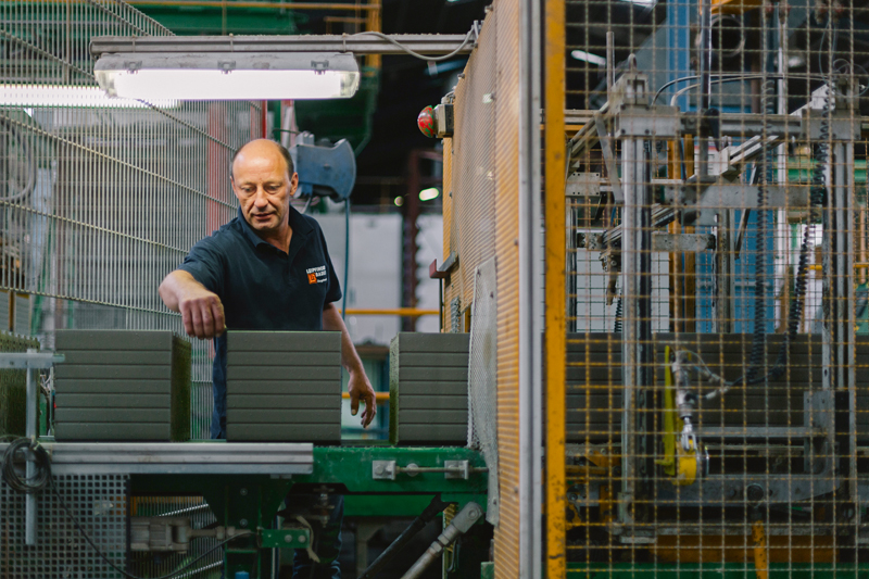 Aber bei Leipfinger-Bader hat man sich auch andere Gedanken gemacht, wie man die wiederaufbereiteten Sandfraktionen des Ziegelbruchs nutzen könne. »Wir haben über hundert Produktideen entwickelt, vom Pflanzsubstrat bis zum Kaltziegel.« Ja richtig, ein Kaltziegel, der nicht getrocknet und gebrannt werden muss und deswegen über eine extrem positive CO2-Bilanz verfügt, gehört zu den jüngsten Entwicklungen bei Leipfinger-Bader. Der neuartige Ziegel aus recyceltem Ziegelstein und mineralischen Bindemitteln wird in einem speziellen Verfahren gepresst und erfüllt dank hoher Rohdichte und Druckfestigkeit die Anforderungen für tragende Innenwände. Verschiedene Prüfinstitute haben in bauphysikalischen Tests bereits die Tauglichkeit des kaltgepressten Innenwand-Vollziegels bestätigt. Sowohl hinsichtlich seiner statischen Eigenschaften als auch in puncto Schallschutz, Frost- und Taufestigkeit schnitt der neue Ziegel positiv ab.