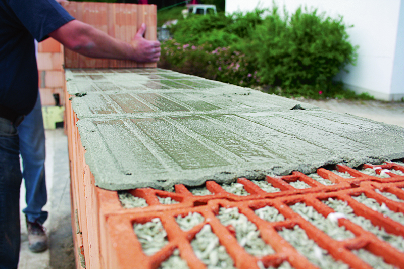 Hinzu komme, so Bader, dass man inzwischen weit mehr als ein reiner Ziegelhersteller sei. So konnte das Geschäft mit Zubehörprodukten und insbesondere mit dezentraler Lüftungstechnik in den letzten Jahren forciert werden. »Unsere strategische Ausrichtung ist klar auf Innovation und Investition ausgelegt«, unterstreicht Thomas Bader. Innovationen entstünden bei Leipfinger-Bader immer im Austausch mit den Kunden und unter der Prämisse, wie diese einfacher, schneller, wirtschaftlicher und ökologischer bauen könnten. Beispiele dafür sind der wasserlösliche Trockenmörtel »Maxit Mörtelpad« oder der mit natürlichen Holzfasern gefüllte Ziegel »Unipor Silvacor«. Die Löcher von Ziegeln zu füllen sei eine geniale Idee, die schon lange existiere, so Bader. »Die Frage lautet nur: Mit was fülle ich ihn? Da unser Ziegel einen Luftanteil von fast 65 Prozent besitzt, macht es Sinn, ihn mit einem ökologischen Material wie Holz zu verfüllen. Dadurch erreichen wir teilweise schon einen höheren Holz-Volumenanteil als bei der Holzständerbauweise«, rechnet Thomas Bader vor. Auf das Thema Holzbau kommen wir später noch einmal ausführlicher zurück. Mit »Unipor Coriso«, einem mit natürlicher Mineralwolle gefüllten Ziegel, hat Leipfinger-Bader schon seit vielen Jahren ein Erfolgsprodukt am Markt. Zugleich ein elementares Produkt für die ganze Ziegelindustrie, so Bader, da man aufgrund steigender Anforderungen im Schallschutz sonst im Geschosswohnungsbau keine Chance mehr gehabt hätte.