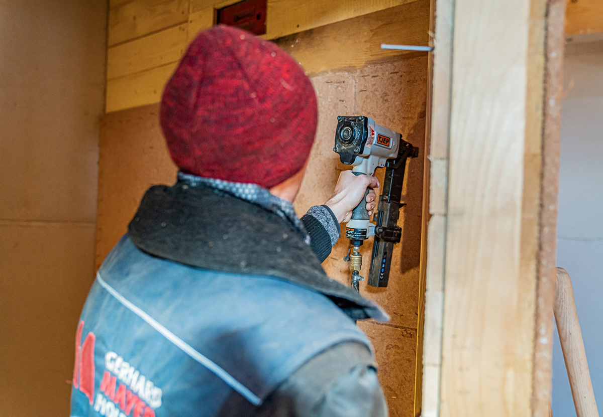 Insgesamt rund 900 Quadratmeter Innenwandfläche wurden im Kindergarten Grassau mit Lehmplatten beplankt. Sowohl für Leipfinger-Bader als auch für die verarbeitende Gerhard Mayer Holzbau GmbH handelt es sich damit um ein Projekt von großer Dimension. Ein regelmäßiger Austausch zwischen allen Beteiligten rund um die Lehmplattenmontage bildete daher die Basis für eine erfolgreiche Bauabwicklung. Zum Einsatz kamen Lehmplatten in der Ausführungsdicke 16 Millimeter. Die Aussteifung der Wände wurde mittels einer Diagonalverschalung ausgeführt. Die Verantwortlichen verzichteten hier aus Gründen der Wohngesundheit auf die Verwendung von verleimten OSB-Platten. Bei der Verarbeitung habe man auf einen besonders schonenden und behutsamen Umgang mit den Lehmplatten geachtet, damit an den Kanten keine Beschädigungen entstehen. Die Lehmplatten wurden auf der Unterkonstruktion mittels Klammern befestigt. Die Montage habe sich damit als besonders einfach und unkompliziert erwiesen und konnte entsprechend zügig abgeschlossen werden.