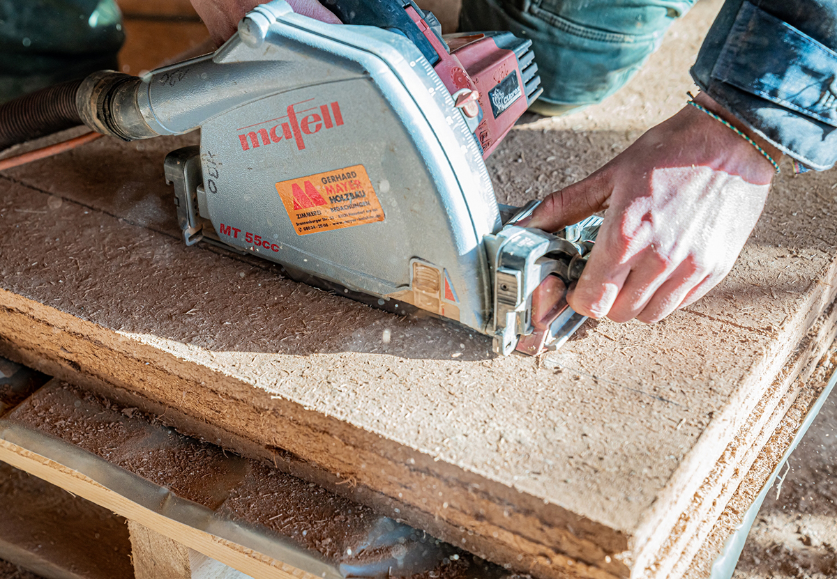 Bei dem Neubau kommen vor dem Hintergrund einer konsequent ökologischen Planung ausschließlich wohngesunde Materialien zum Einsatz. Die Verantwortlichen verzichten daher auf schädliche Kleber, Leim und Kunststoffe. Für die intelligente und natürliche Raumklimaregulierung sollen Lehmplatten von Leipfinger-Bader sorgen. Lehm – ein reines Naturmaterial, das regional gewonnen werden kann – zählt zu den ältesten Baustoffen der Welt. Schonend zu modernen Lehmplatten für den Innenausbau verarbeitet und entsprechend verbaut, erhöht das Material maßgeblich die Atmungsaktivität der Wände. Aufgrund ihrer diffusionsoffenen Oberfläche können Lehmplatten Wärme und Luftfeuchtigkeit aufnehmen und wieder abgeben. Im Ergebnis entsteht so ein jederzeit ausgeglichenes Raumklima. Auch Gerüche und Partikel können gebunden werden. Damit eignen sich Lehmplatten insbesondere auch für allergiegeplagte Menschen.