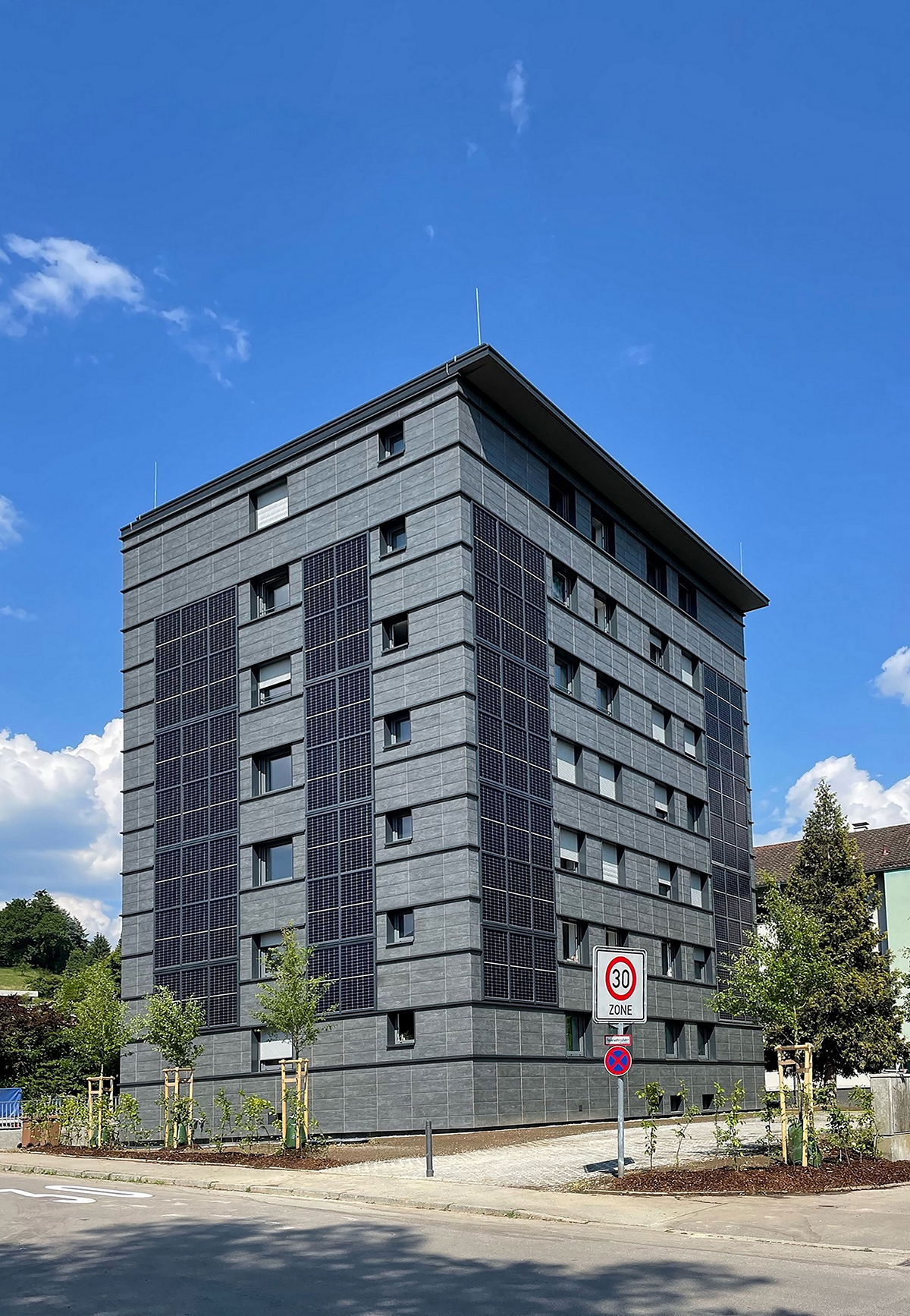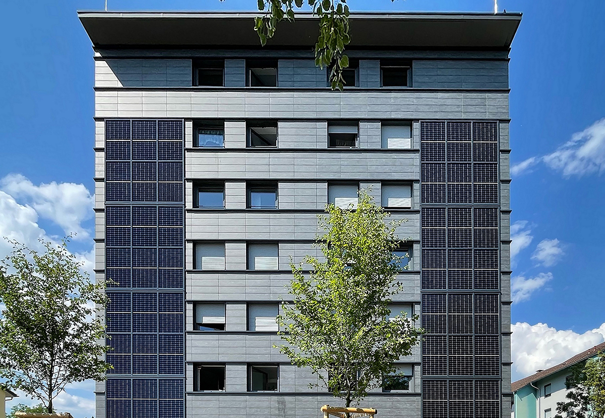 In Lindau am Bodensee wurde jetzt ein in die Jahre gekommenes Wohnheim umfassend renoviert und erweitert. Die moderne Fassade besteht dabei aus im Wechsel angeordneten Tonality-Keramik- und Photovoltaikelementen. Durch die Gebäudeerweiterung und die neue Fassade wirkt das Gebäude jetzt klar strukturiert, gepflegt und modern. In einem intensiven Abstimmungsprozess erarbeiteten die Bauherrin GWG Lindauer Wohnungsgesellschaft und Leipfinger-Bader die besondere Schieferoptik der Keramikelemente, die dann individuell für dieses Projekt produziert wurden.