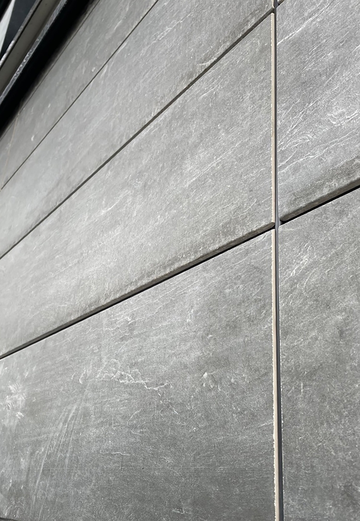 Die Farbgebung und Oberflächenbeschaffenheit der Keramik, die bei dem Männerwohnheim in Lindau zum Einsatz kam, ist das Ergebnis eines intensiven Abstimmungsprozesses zwischen der GWG, dem Planungsteam und der Objektüberwachung aus der gbd-Gruppe, welche zuständig für die Leitdetailvorgabe und die Umsetzung am Objekt war, und Leipfinger-Bader – und damit ein hochgradig individualisiertes Produkt. Die Bauherrin wünschte sich eine Schieferfassadenoptik und entschied sich aus den folgenden Gründen nicht für eine echte Schieferfassade, sondern eine Keramikfassade mit Schieferoptik: „Wir haben gemeinsam mit der GWG jedes Detail intensiv besprochen und verschiedene Designs gegeneinander abgewogen, damit das hell-dunkle Farbspiel und die Anordnung der Adern am Ende exakt passen. So hat die GWG von uns eine wirtschaftliche Fassadenlösung im gewünschten Design erhalten, die insbesondere auch mit ihrer – im positiven Sinne ungewöhnlichen – Unzerstörbarkeit überzeugt“, erklärt Michael Streilein, Key Account Manager bei Leipfinger-Bader und zuständig für die Tonality-Fassade des Lindauer Sanierungsprojekts.