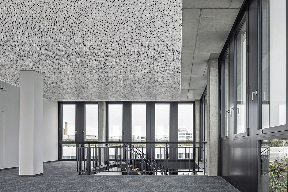 Visuell erinnert die Deckenoberfläche der »Spreadline Perforation Rsl 130-10« an eine herkömmliche Gipskartondecke mit Streulochung – doch sie bietet weitaus mehr: So überzeugt die Perforation unter anderem mit einem nahezu nahtlosen Übergang und damit kaum sichtbaren Fugen. Um schnell und einfach in den Deckenhohlraum zu gelangen, sind die Deckenplatten mit einem freien Querschnitt von zehn Prozent und einer Größe von jeweils 1 800 x 600 mm werkzeuglos abnehmbar – optisch störende Revisionsklappen werden überflüssig.