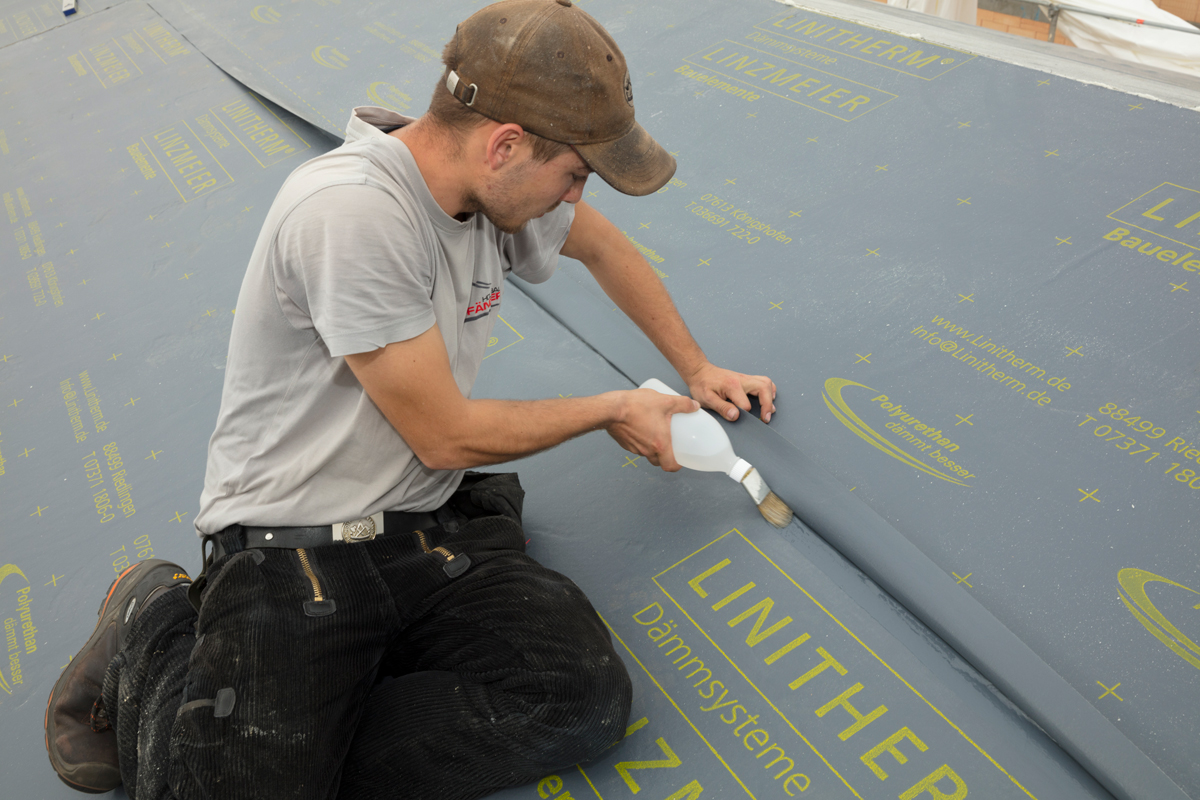 »Linitherm PAL XXL« hat sich bereits vielfach in der Praxis bewährt. Beispielsweise war das Dach eines Effizienzhauses 55 in nur 90 Minuten fertig gedämmt – inklusive Quellverschweißung der Überlappung und Aufbringen der Nageldichtbänder für die Lattung. »Linitherm PAL XXL« ist mit einem Dämmkern nach DIN EN 13165 ausgestattet. Mit diesem druckfesten Hochleistungsdämmstoff (λD 0,022 W/(m·K) bzw. Bemessungswert λB 0,023 W/(m·K)) werden bei geringen Aufbauhöhen hohe Dämmwerte erzielt. Zudem sind die Dämmelemente beidseitig mit Alufolie kaschiert, die auch gegen Elektrosmog schützen. Statt der Alukaschierung gibt es das Produkt auch als »Linitherm PGV XXL« mit beidseitiger Mineralvlieskaschierung. Aufgrund der hohen Wärmedämmleistung eignet sich das Produkt ideal zum schnellen und energieeffizienten Bauen.