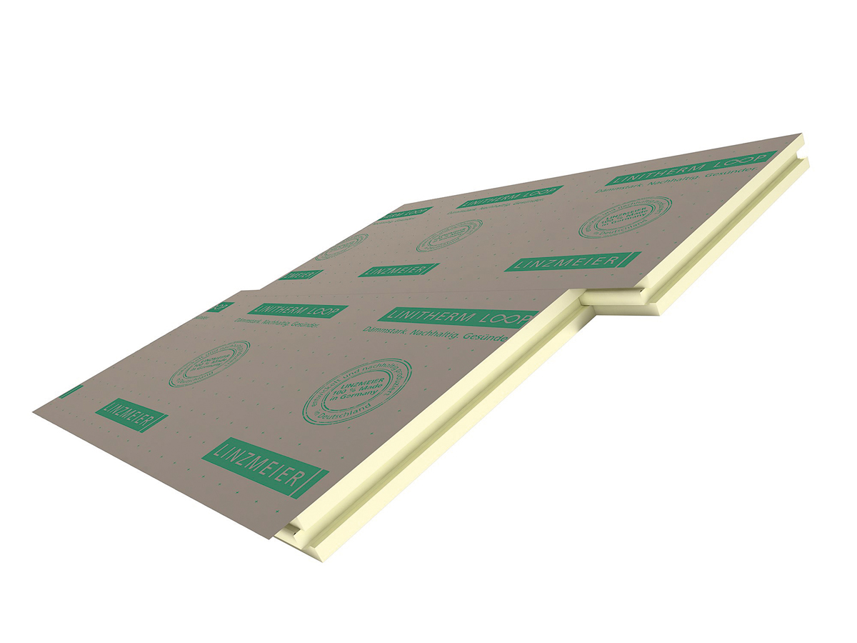 Eine der vorgestellten Neuentwicklungen ist »Linitherm Loop PAL 2U«, eine ökologische Alternative zu dem Dämmsystem »Linitherm PAL 2U«, welches sich seit vielen Jahren auf dem Markt bewährt hat. Dank einer auf den PU-Hartschaum-Kern aufkaschierten Unterdeckbahn können beide Produkte in Kombination mit einer »Linitherm«-Nageldichtung als Behelfsdeckung eingesetzt werden.