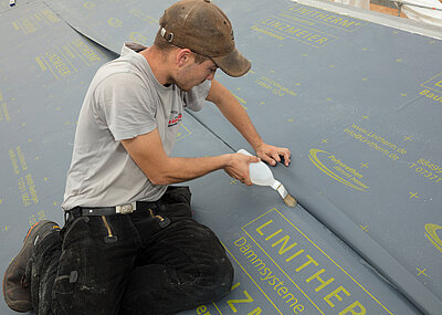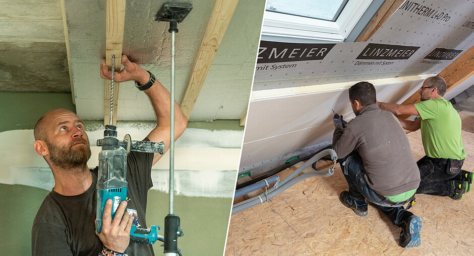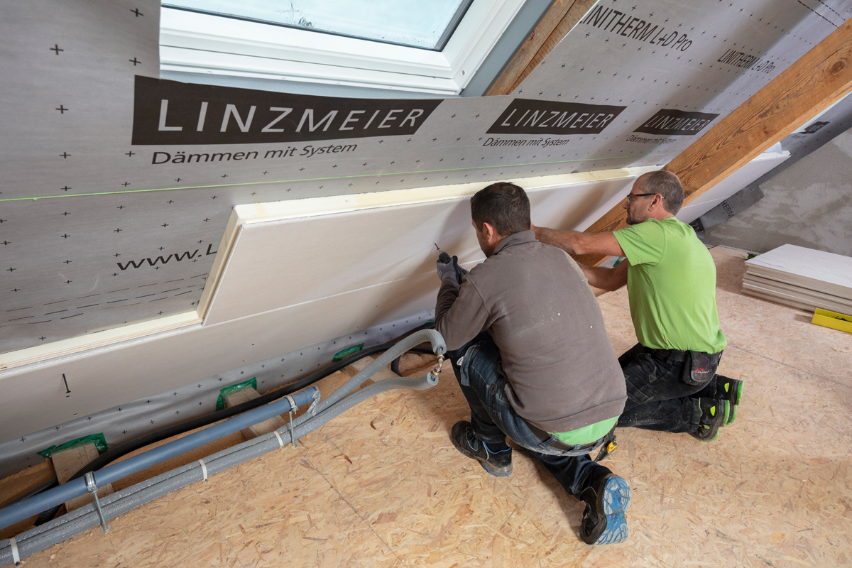Wo eine Aufsparrendämmung nicht möglich ist, lässt sich die Energieoptimierung des Dachs mit einer Untersparrendämmung durchführen. Die »Linitherm PAL GK«-Elemente können direkt unter den Sparren verlegt werden und bestehen aus einem beidseitig alukaschierten Dämmkern und einer raumseitig aufkaschierten Gipskartonplatte (Dicke 9,5 mm). Die Alukaschierung fungiert als Dampfbremse und bietet einen zusätzlichen Schutz vor Elektrosmog (hochfrequente Strahlung). Die raumseitige Oberfläche ist putz- und tapezierfähig und ermöglicht einen schnellen, unproblematischen Dachausbau.