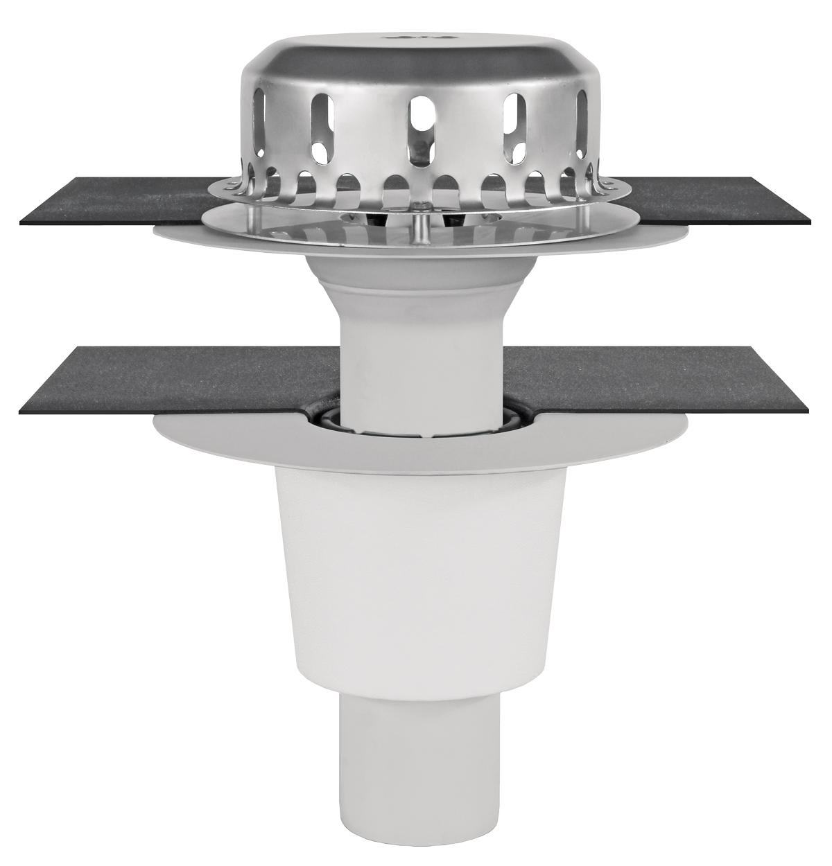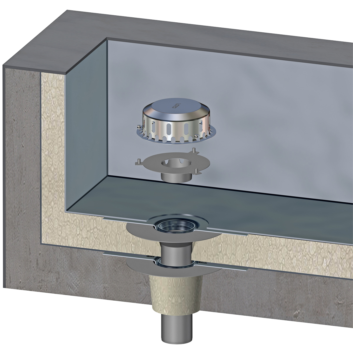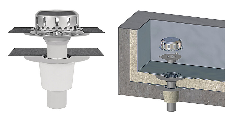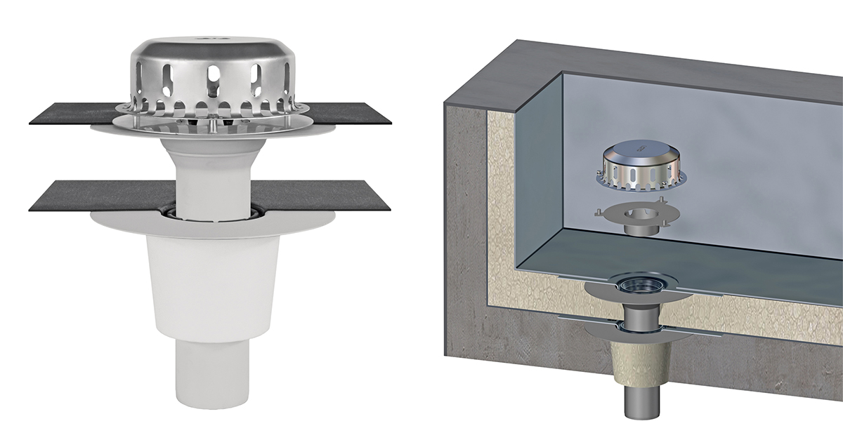 So unterschiedlich die baulichen Situationen, so differenziert die technischen Lösungen. So gibt es verschiedene Produktserien für die Balkon- und die Flachdachentwässerung. Doch auch wenn sich die Abläufe im Aufbau unterscheiden, ist ihre Montage vergleichbar: Einsetzen in den Baukörper und Anschließen der Abdichtung an den Dach- oder Balkonaufbau. Hier treffen die Abläufe auf eine ebenfalls große Zahl an möglichen Konstruktionen, insbesondere die Auswahl an Dichtungsbahnen ist hoch. Dann stellt sich die Frage, wie sich das Bauteil an den Aufbau vor Ort einfach und sicher anschließen lässt. Ideal ist der Anschluss mit Manschette. Diese verbindet den Ablauf mit der Dichtungsbahn. Dabei wird zuerst der Ablauf mit der Manschette verbunden, im zweiten Schritt die Manschette mit der flächigen Abdichtungsbahn. Loro bietet Abläufe, bei denen der erste Arbeitsschritt bereits werkseitig erfüllt ist: Die Manschette ist (generell rückstausicher) eingeklemmt und lässt sich dadurch einfach – und schnell – auf dem Dach montieren.