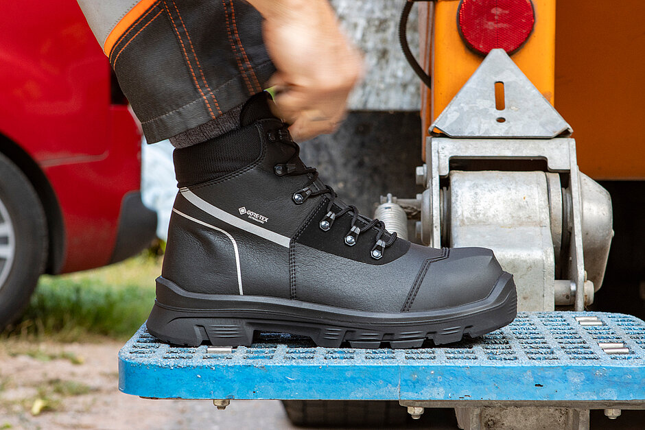 Am Anfang steht das Design. Es muss Sicherheit, Ergonomie und Funktionalität vereinen – und zugleich den Tragekomfort gewährleisten. Erst wenn alle Labor- und Praxistests erfolgreich abgeschlossen sind, beginnt die eigentliche Produktion. Ein Sicherheitsschuh besteht aus zahlreichen Einzelteilen, die in der richtigen Menge, Qualität und zum passenden Zeitpunkt verfügbar sein müssen. Diese logistische Herausforderung erfordert eine präzise Planung: Verzögerungen in der Lieferkette können ganze Produktionsabläufe beeinflussen. Die Fertigung selbst ist echte Handwerkskunst. Das passgenaue Zusammensetzen vieler Komponenten nach höchsten Sicherheitsstandards erfordert erfahrene, bestens geschulte Fachkräfte, deren Wissen über Jahre hinweg aufgebaut wird.