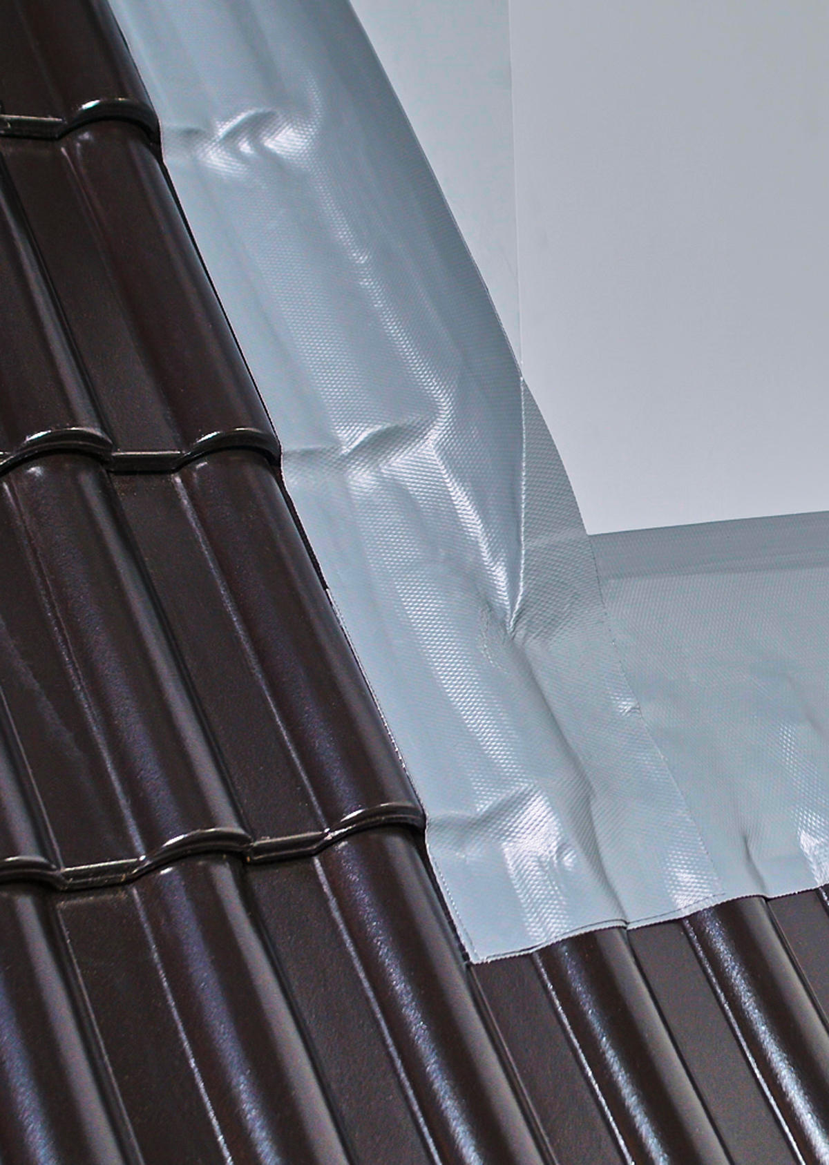 Überdies verfügt »VarioFit« über ein hochwertiges und dickeres Streckgewebe. Damit lässt es sich im rauen Baustellenalltag bis zu 97 Prozent in der Länge und 20 Prozent in der Breite dehnen, ohne seine wasserdichte Funktion zu verlieren. Dadurch kann »VarioFit« schnell und einfach an die vorgegebene Form des Untergrundes moduliert werden. Die Kombination aus dauerhaft abdichtendem Polyisobutylen (PIB), Streckmetall und einer Selbstklebeschicht lässt sich auch für Reparaturen und Ausbesserungen einsetzen. Insbesondere bei der Ausbildung von Anschlüssen an Kaminköpfen überzeugt das variable Material. Denn bei einer überlappenden Verlegung verschweißt sich die selbstklebende Rückseite mit der wasserdichten Oberfläche, wodurch eine wasserdichte Verbindung entsteht. »VarioFit« ist in den gängigen Steildachfarben Schwarz, Rot und Grau sowie in den Breiten 300 mm und 400 mm erhältlich. Mit einem scharfen Messer oder einer optional erhältlichen Schere lässt sich »VarioFit« passend zuschneiden.