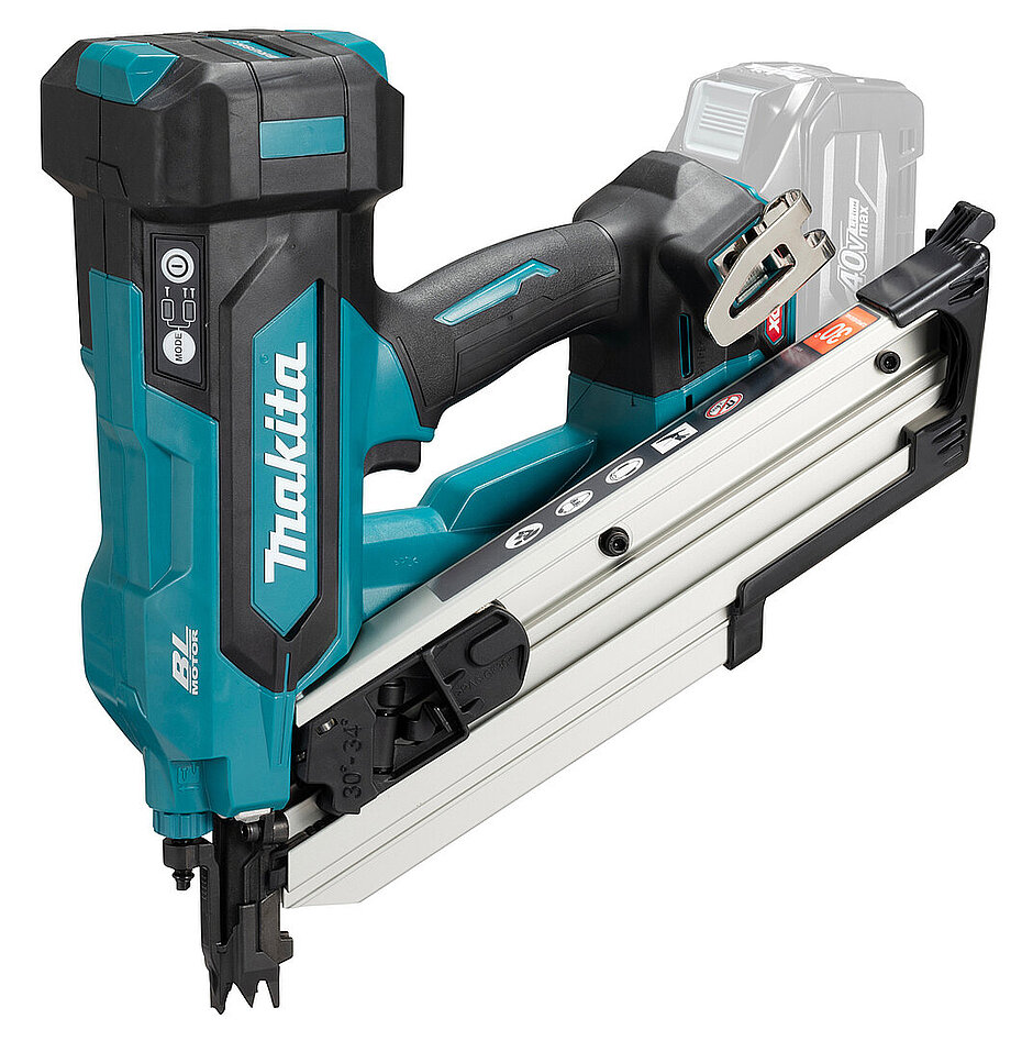 Der »BN002G« hingegen ist für Rundkopfnägel konzipiert und fasst 36 bis 41 Nägel pro Magazin, die in einem Winkel von 21° verarbeitet werden. Mit einem Gewicht von 5,4 kg (inklusive Akku »BL4080F«) und Abmessungen von 389 × 189 × 358 mm (L × B × H) überzeugt auch dieses Modell durch handliche Bauweise und gute Balance.