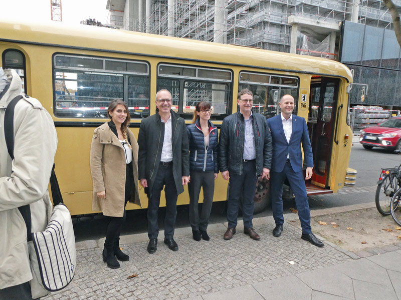 Zum Abschluss der Veranstaltung wurden ausgewählte Baustellen und Referenzobjekte besichtigt, bei denen Mapei-Produkte verwendet werden. Der Showroom von »Concept Parquets by Straehuber« war eines der Highlights bei der Bustour durch die Hauptstadt. J