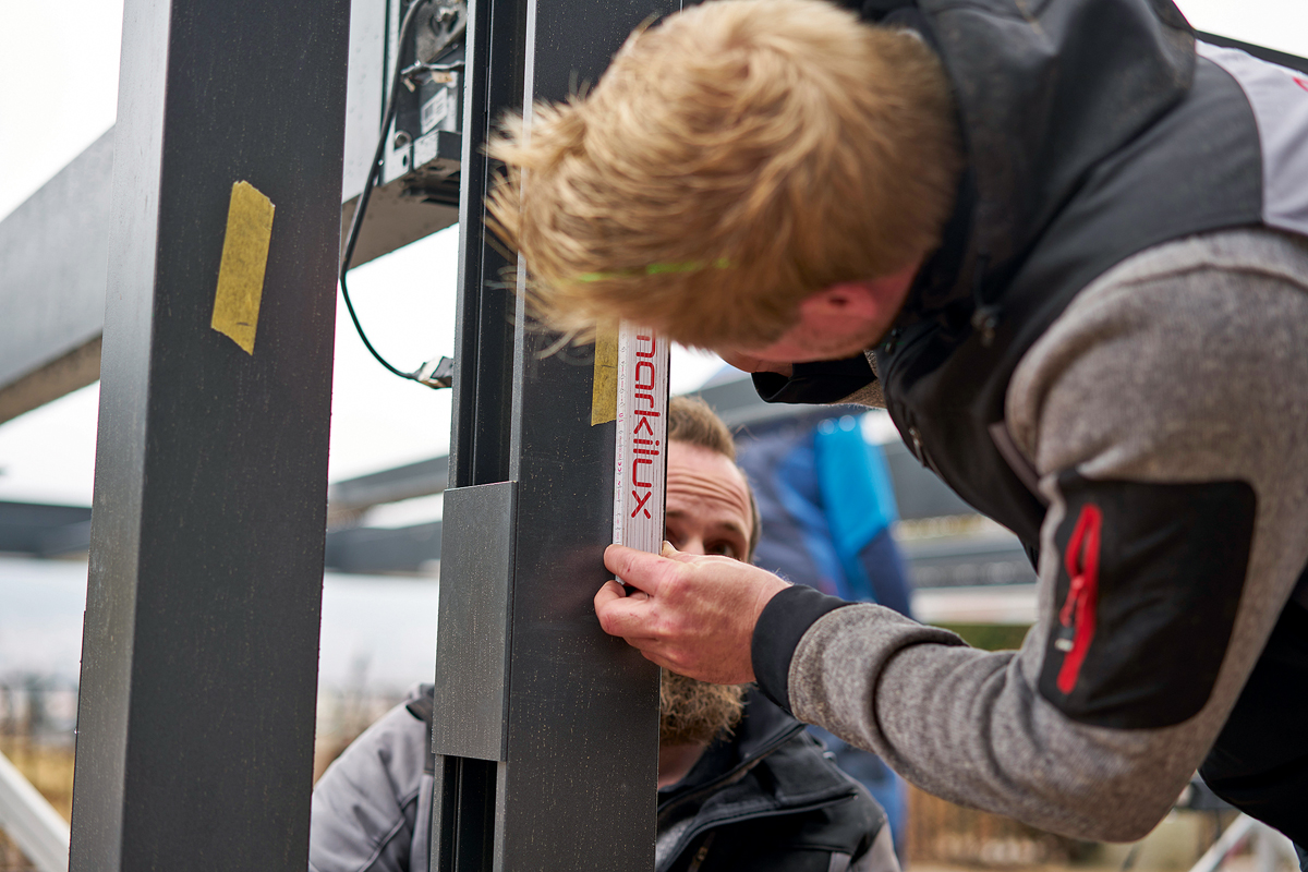 Bei der Montagehilfe steht den Mitarbeitern des Fachpartners ein erfahrener Servicetechniker von Markilux zur Seite. Je nach Projekt können es auch mehrere Techniker sein. Der Service soll den fachgerechten und zeitsparenden Aufbau der Produkte sicherstellen. Jan Kattenbeck sieht zudem einen Vorteil darin, dass Markilux auf diese Weise sein spezielles technisches Know-how weitergeben kann. Dies sichere auch zukünftig eine hohe Montagequalität bei den Fachbetrieben. Kattenbeck erklärt: »Entscheidend dabei ist, dass die Fachpartner, auch wenn wir sie begleiten, letztlich für die Montage verantwortlich sind. Unsere Servicetechniker verstehen sich als anleitende Unterstützer, die Tipps und spezielle Kniffe weitergeben.«