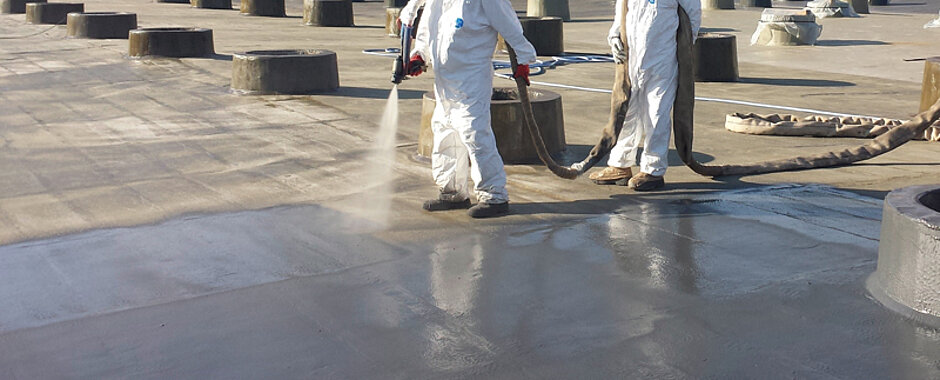 »MasterSeal M 689« ist eine 100-prozentige Polyurea-Spritzabdichtung. Seit Kurzem ist jetzt auch die weiterentwickelte, ableitfähige Variante »MasterSeal M 689 AS« – AS steht für antistatisch – erhältlich. Beide Varianten verfügen über eine bauaufsichtliche Zulassung als Beschichtung für Beton in LAU-Anlagen gemäß WHG sowie über viele weitere Eignungsnachweise in anderen Anwendungsbereichen, wie z. B. AbPs für Oberflächenschutzsysteme OS 10 oder ETAs nach ETAG 005 für Dachabdichtungen. »MasterSeal M 689 (AS)« kann auf komplizierten Bauteilgeometrien sowie vertikalen Untergründen in kürzester Zeit nahtlos appliziert werden. In Kombination mit den guten chemischen, mechanischen und rissüberbrückenden Eigenschaften wird die Beschichtung laut Hersteller als Multitalent bei einer Vielzahl schwieriger Objekte zum Schutz und zur Verlängerung der Lebensdauer eingesetzt. J