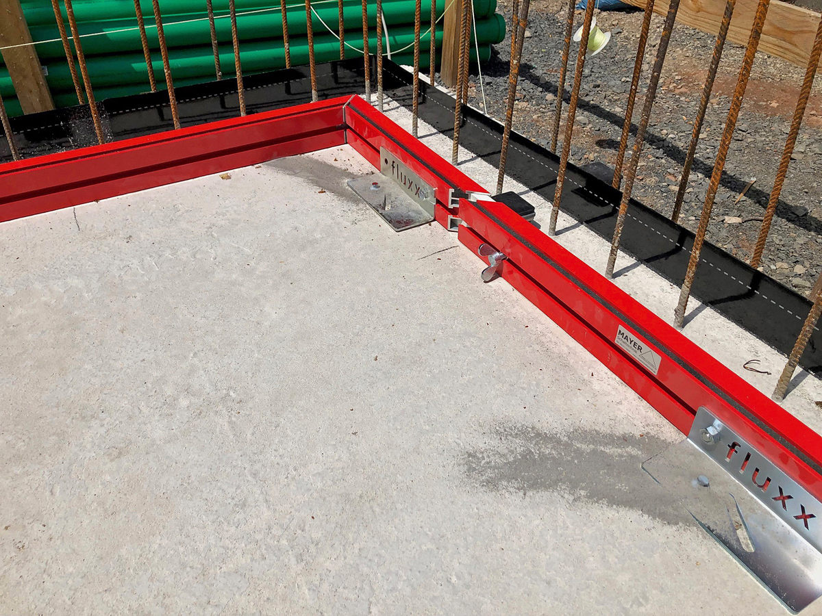 Um schnell und wirtschaftlich performen zu können, hat Loosen auf den unterfränkischen Schalungshersteller Mayer Schaltechnik und dessen Produkte vertraut. Gerade für die Kombination aus Ortbeton und Hohlwänden, wie sie in Zündorf verbaut wurden, ist die Stoßabschalung »Fluxx« laut Hersteller prädestiniert. Neben der technischen Finesse, aus der sauberste Fugen in Rekordzeit resultieren, trotzt sie auch den Regentagen dank ihrer Witterungsunabhängigkeit.