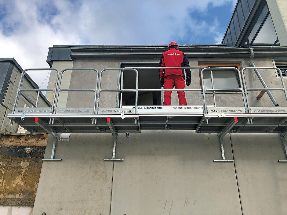 Auch im »Hausgebiet« von Mayer haben sich die Vorteile der »sigeMAX« längst herumgesprochen. »Der geringe zeitliche Aufwand von Konfektionierung, Anbringung bis hin zur Umsetzung der Betonierbühne ist nach meinen langjährigen Erfahrungswerten als Polier verglichen mit ähnlichen Bühnen und Plattformen nahezu konkurrenzlos. Der großzügig bemessene und rutschfeste Belag vermittelt außerdem ein extrem sicheres Gefühl beim Betonieren«, äußert sich beispielsweise Michael Seit von der Firma Riedel Bau in Schweinfurt.