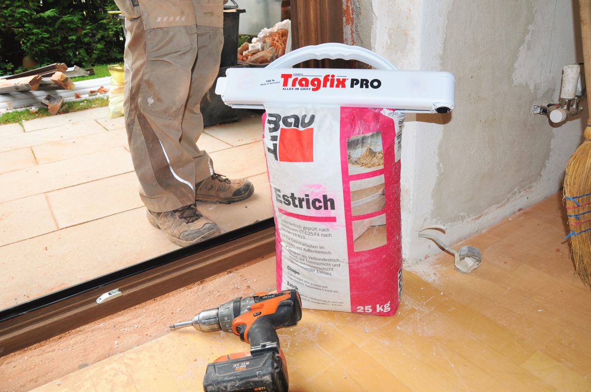 Egal ob Müllbeutel, Grillkohle, Zementsäcke, Katzenstreu oder Blumenerde – mit dem »Tragfix« ist alles sicher verschlossen und einfach zu transportieren. Der »Tragfix« ist für die meisten, handelsüblichen Papier-, Plastiktüten und Säcke geeignet. Martin Ecker ist der Erfinder des Tragfix und betreibt eine Firma für Bautenschutz und -sanierung. Er hat als selbstständiger Handwerker mehr als zehn Jahre zuerst den »Tragfix classic«, später den »Tragfix Pro«, tagtäglich auf seinen Baustellen im Einsatz gehabt.